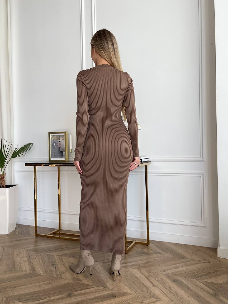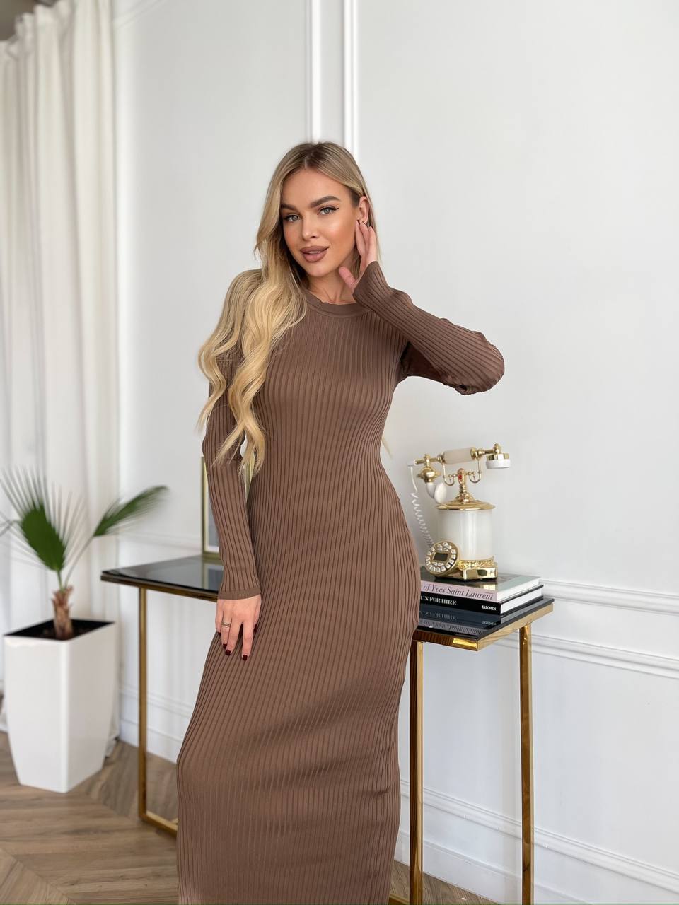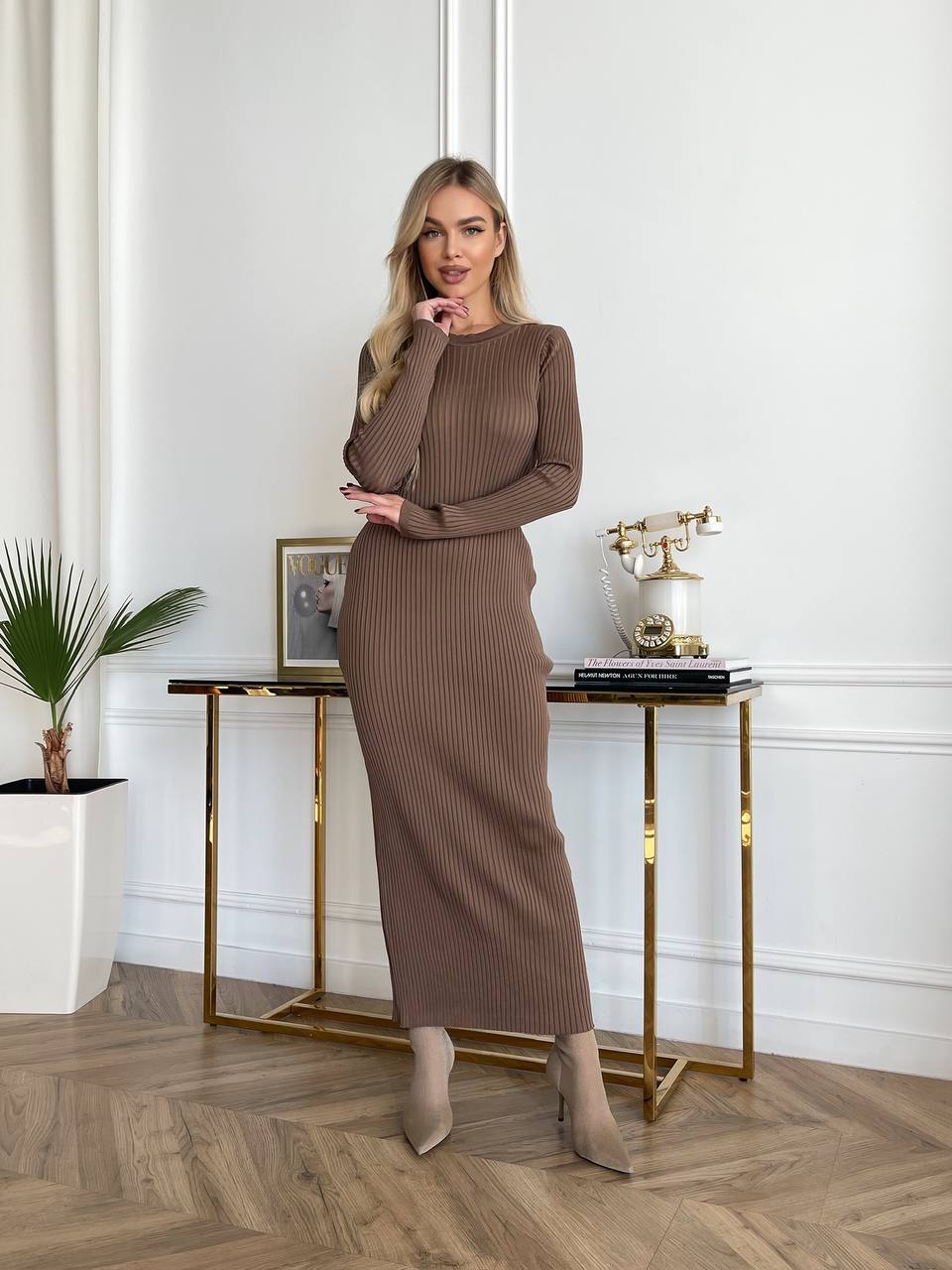 Женское Длинное Платье Макси Мокко в Рубчик Облегающего Фасона