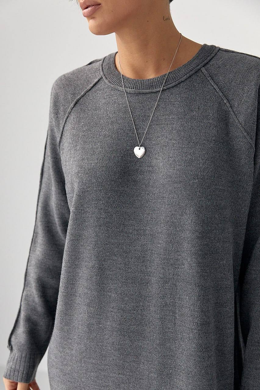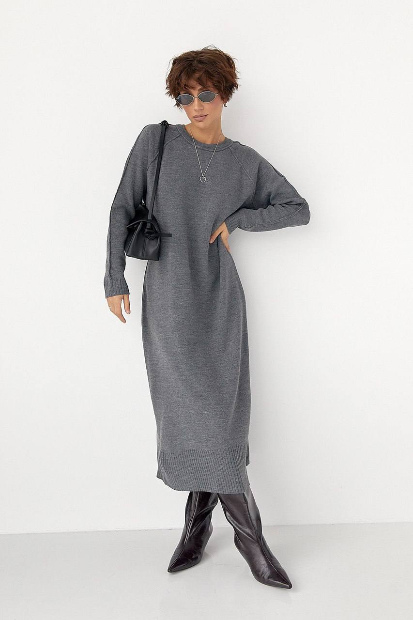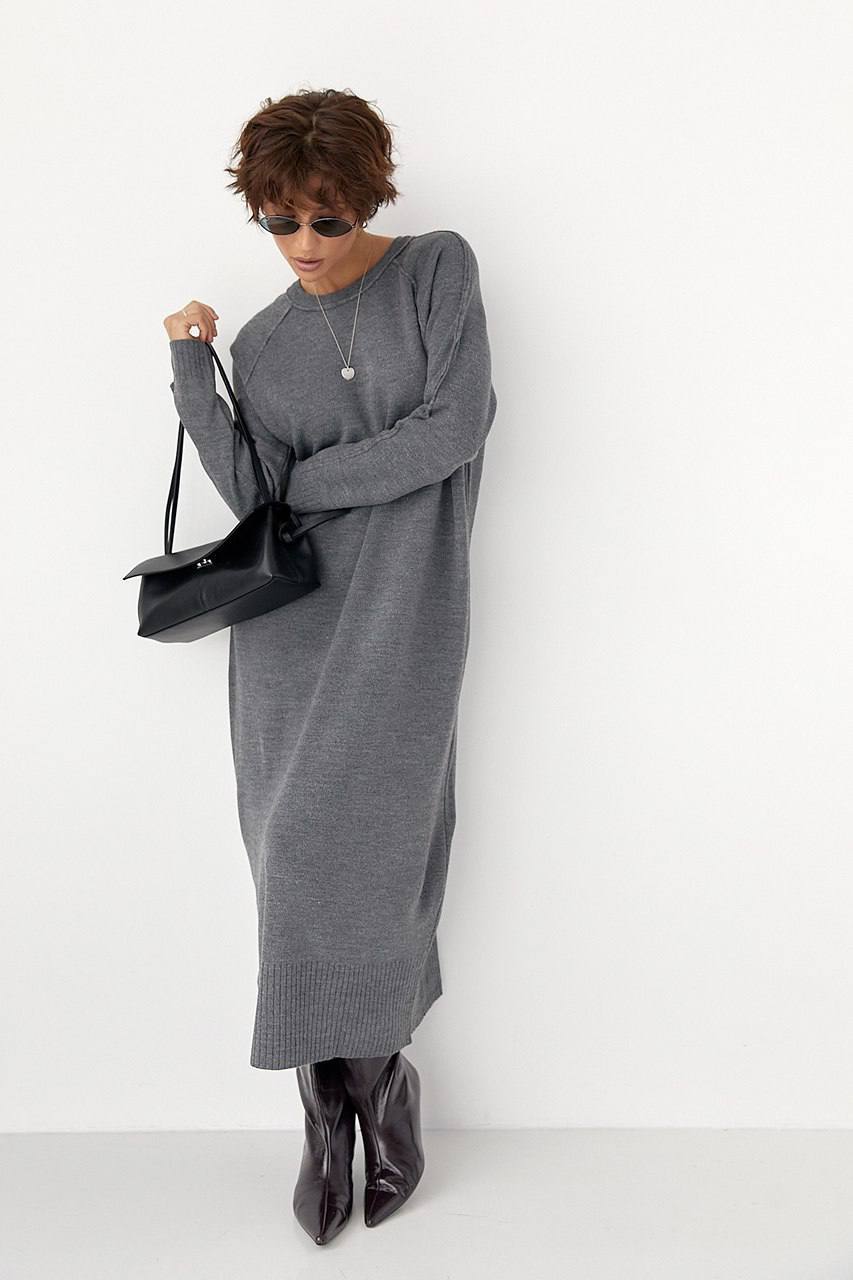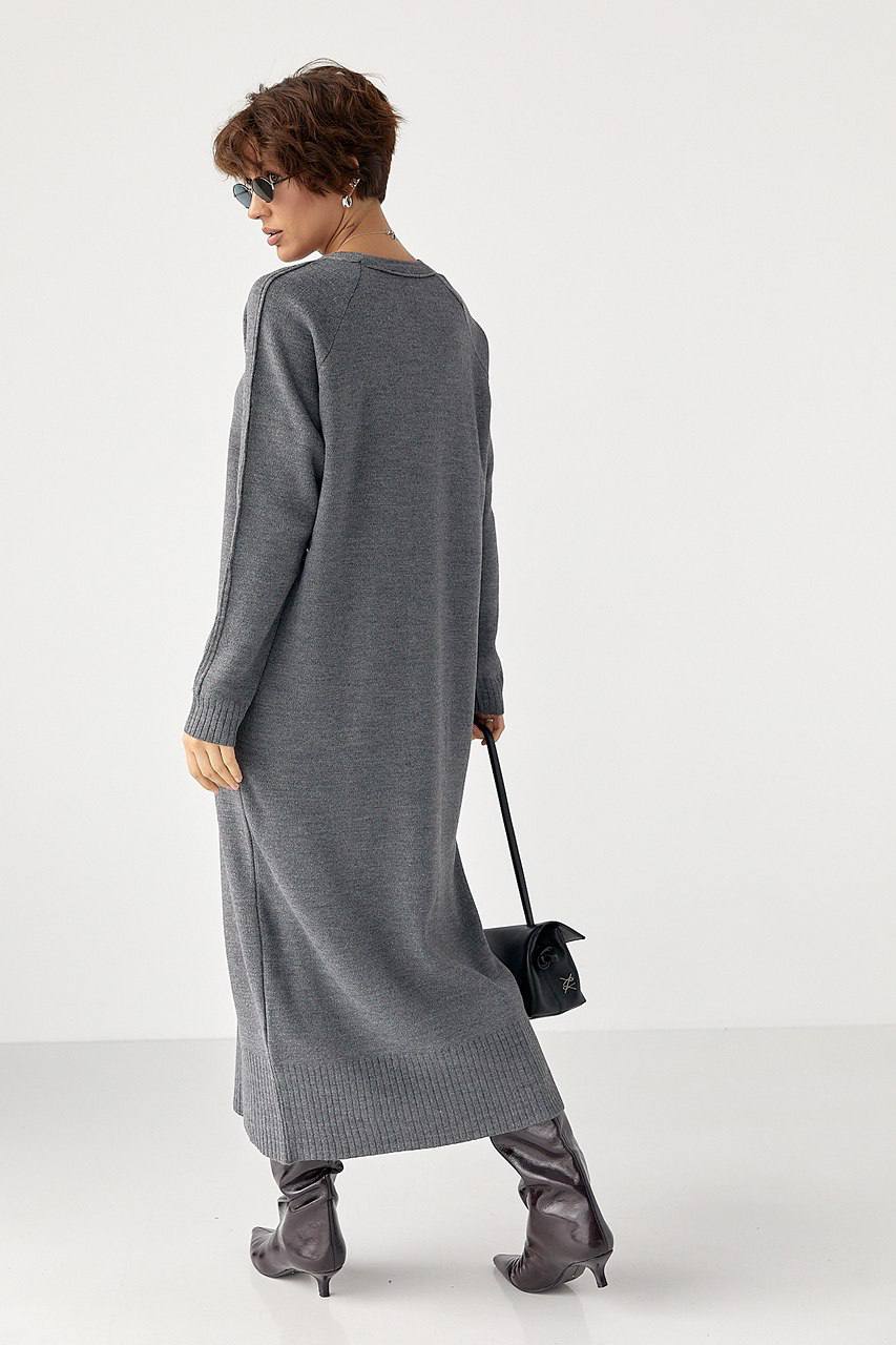 Женское Длинное Трикотажное Серое Платье Свободного Кроя