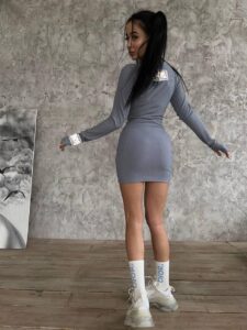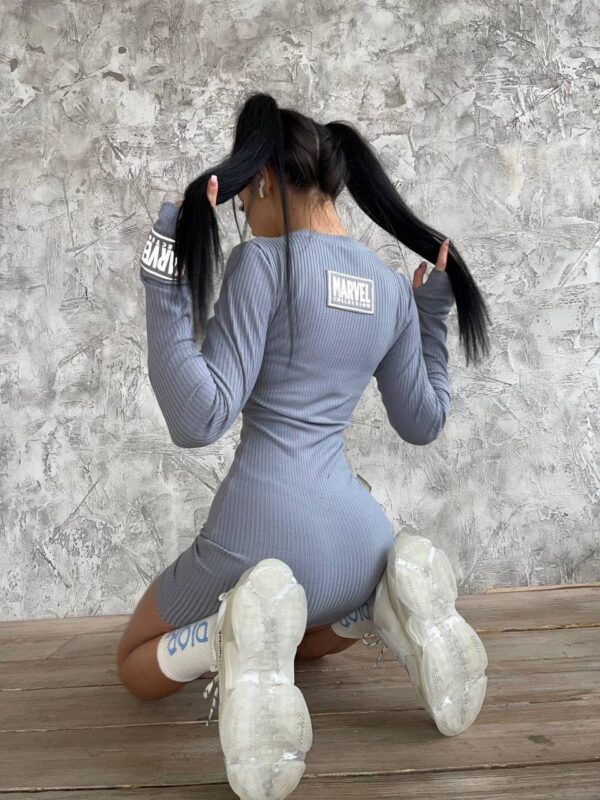 Дерзкое платье в стиле Marvel. Из трикотажа в рубчик с рукавами перчатками.