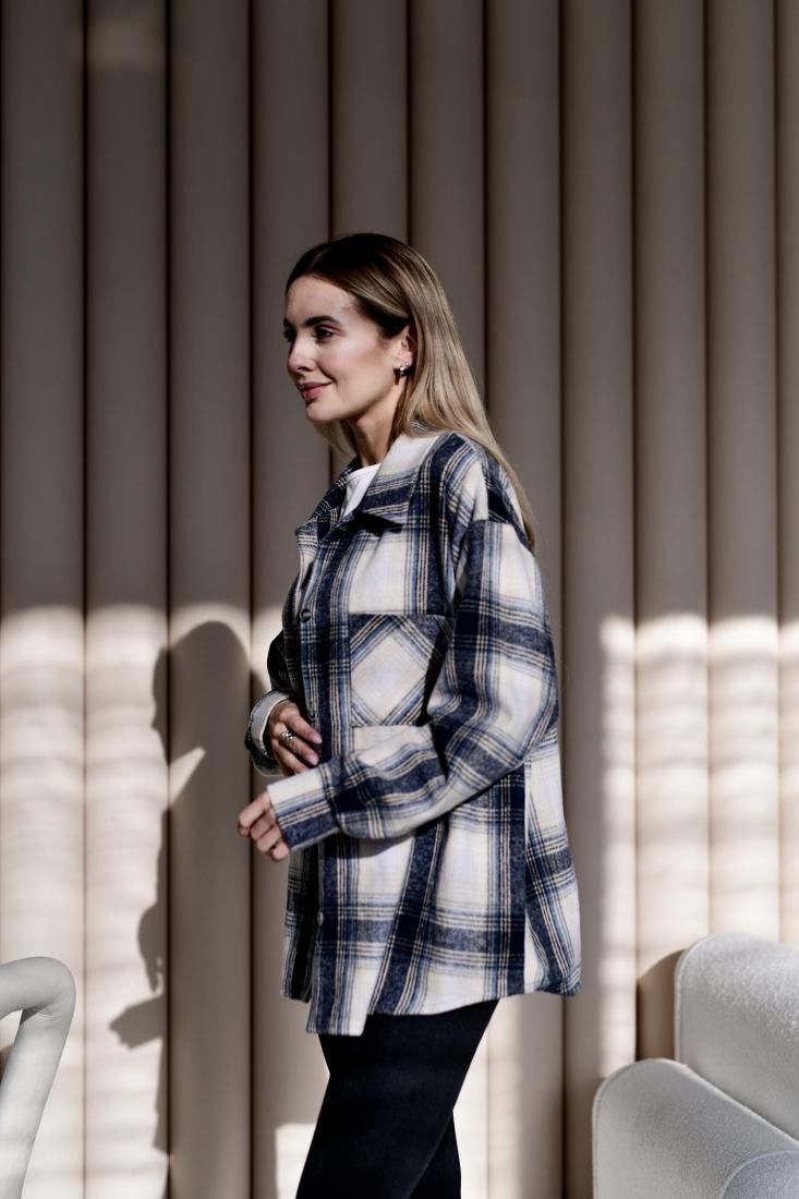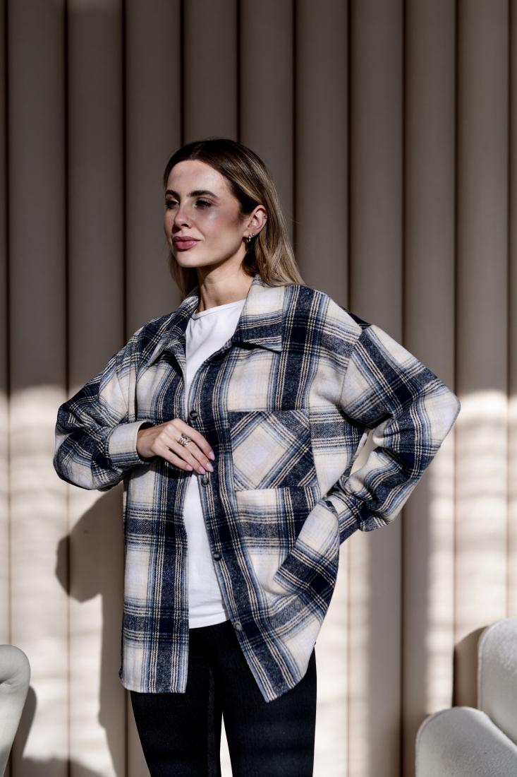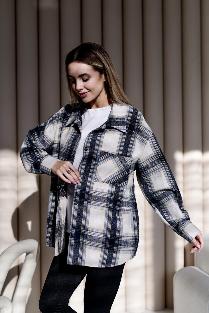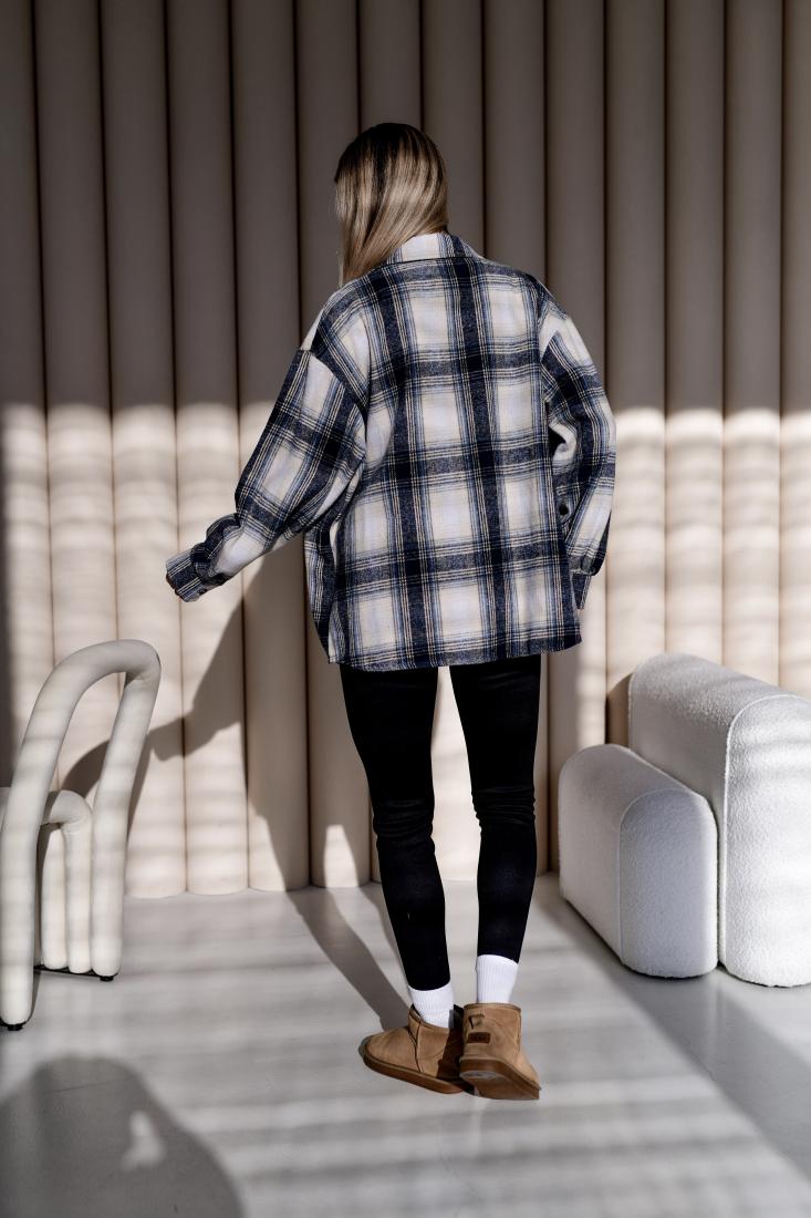 Женская Байковая Клетчатая Черно-Белая Рубашка Оверсайз
