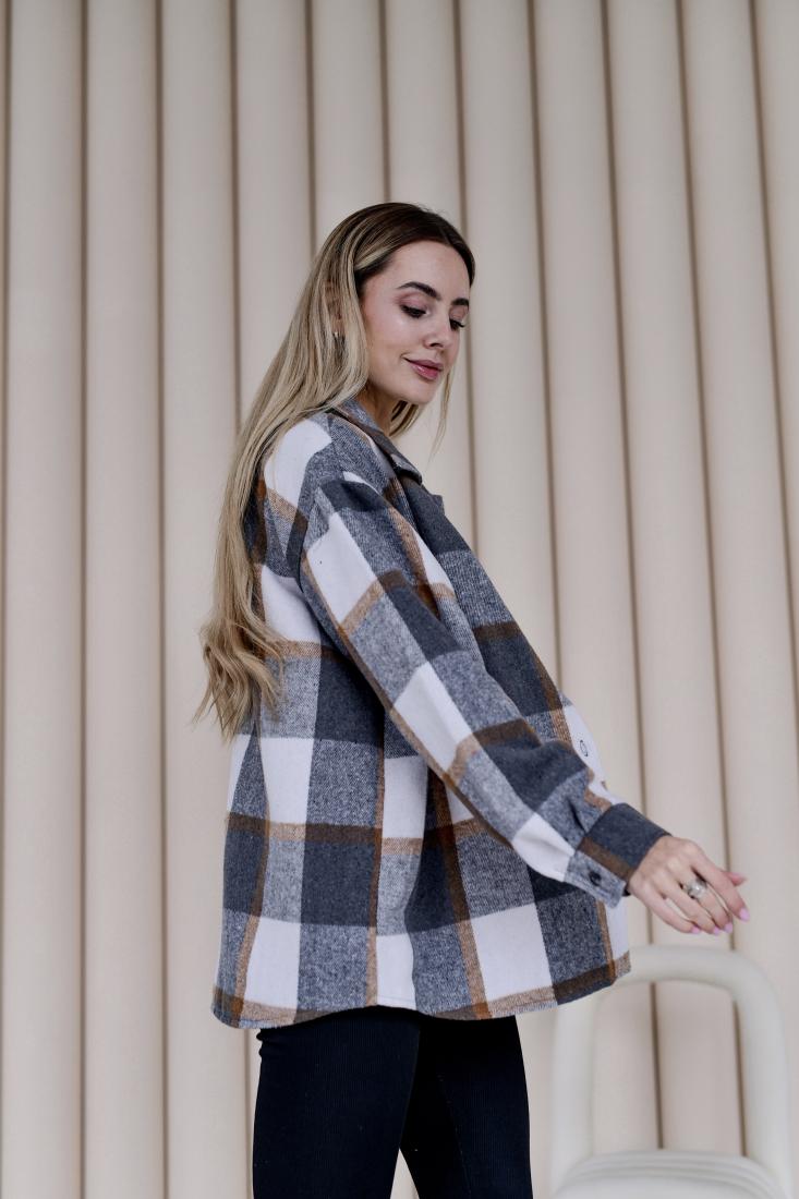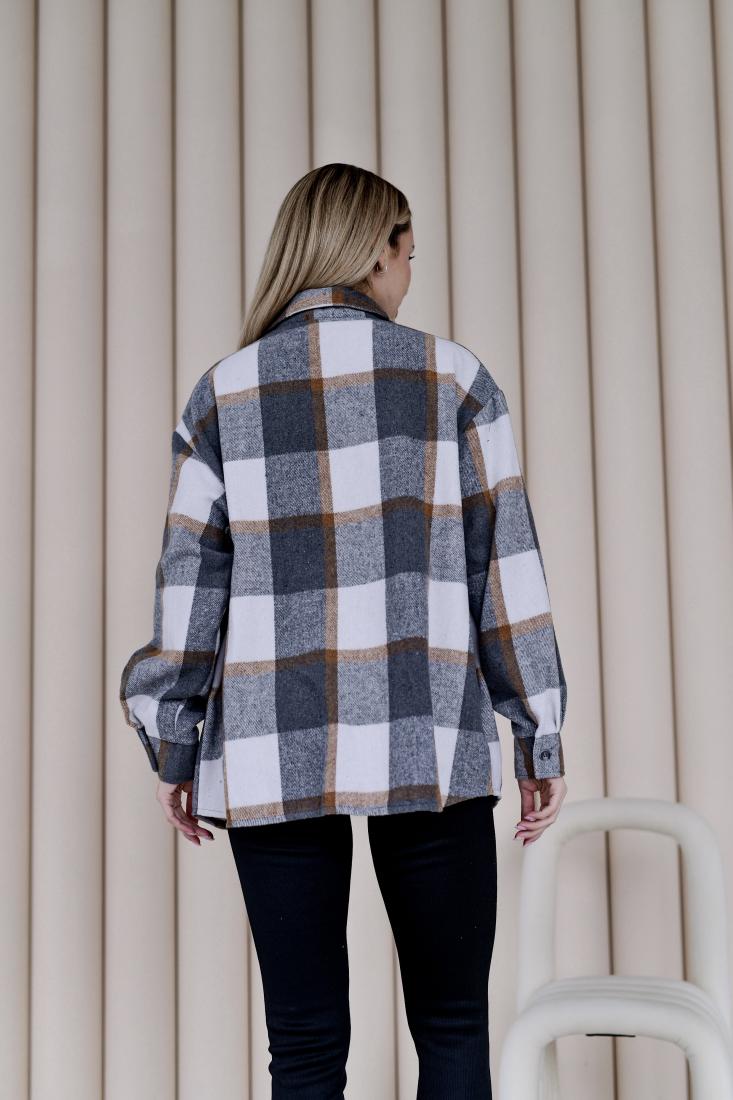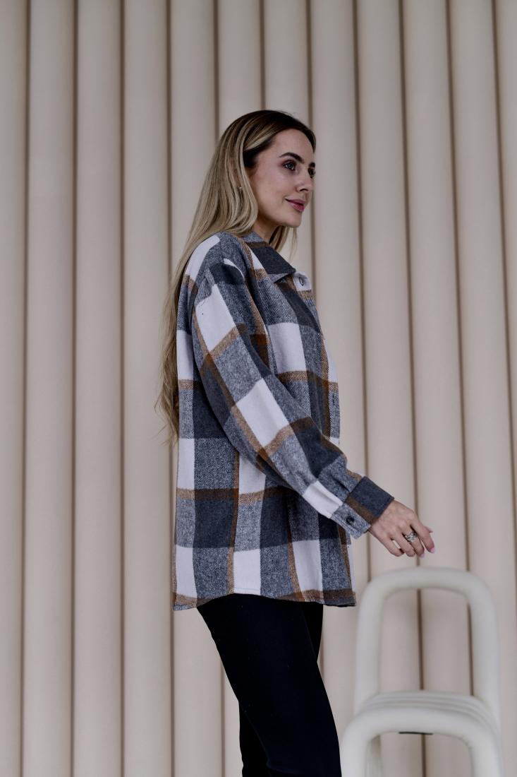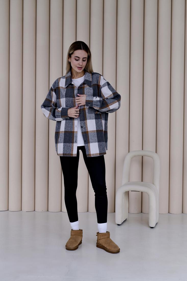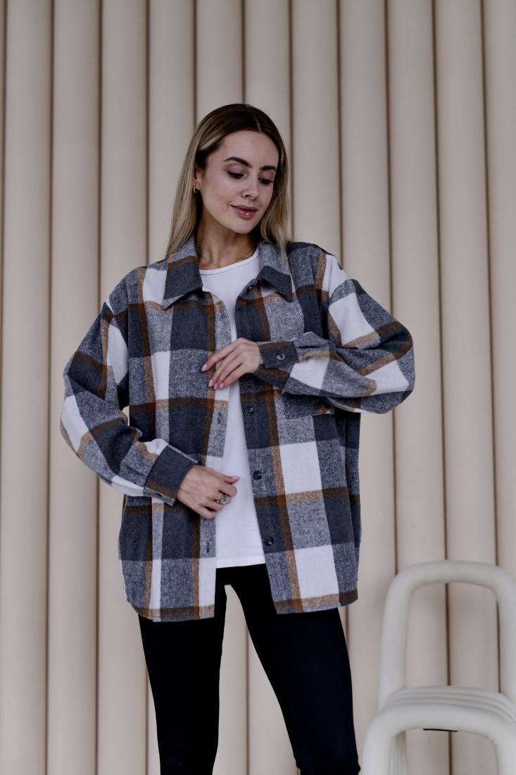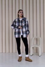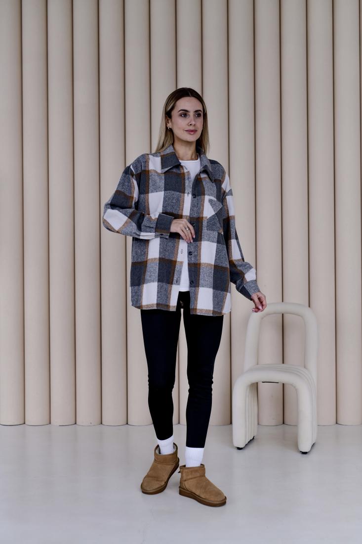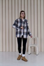 Женская Байковая Клетчатая Графитовая Рубашка Оверсайз