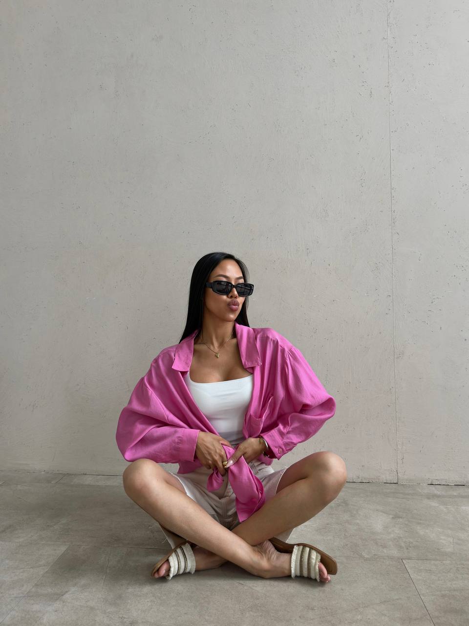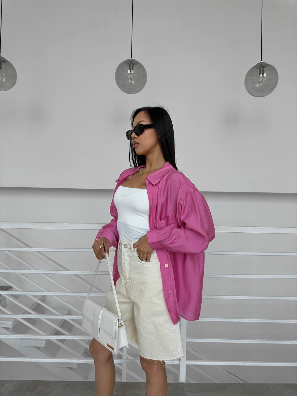 Женская Базовая Розовая Рубашка Оверсайз Софт – Легкая Свободного Кроя на Пуговицах