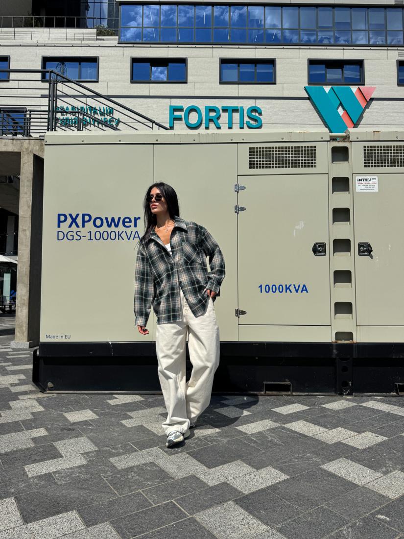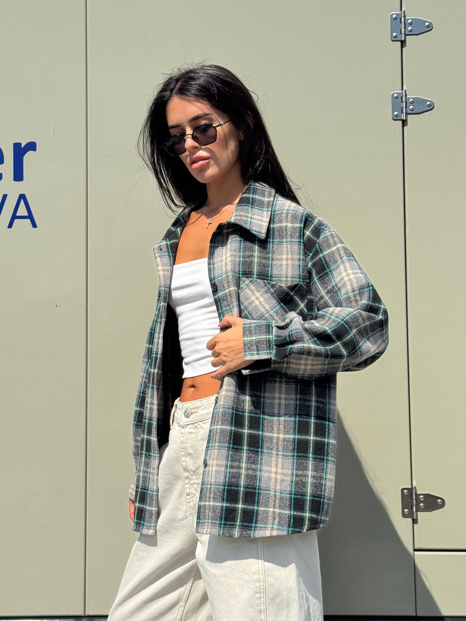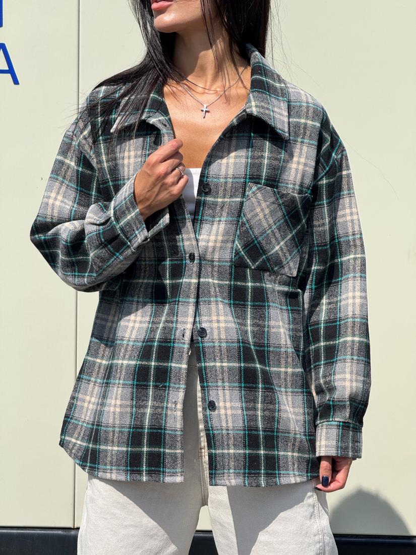 Женская Клетчатая Чорно-Серая Рубашка Оверсайз на Пуговицах