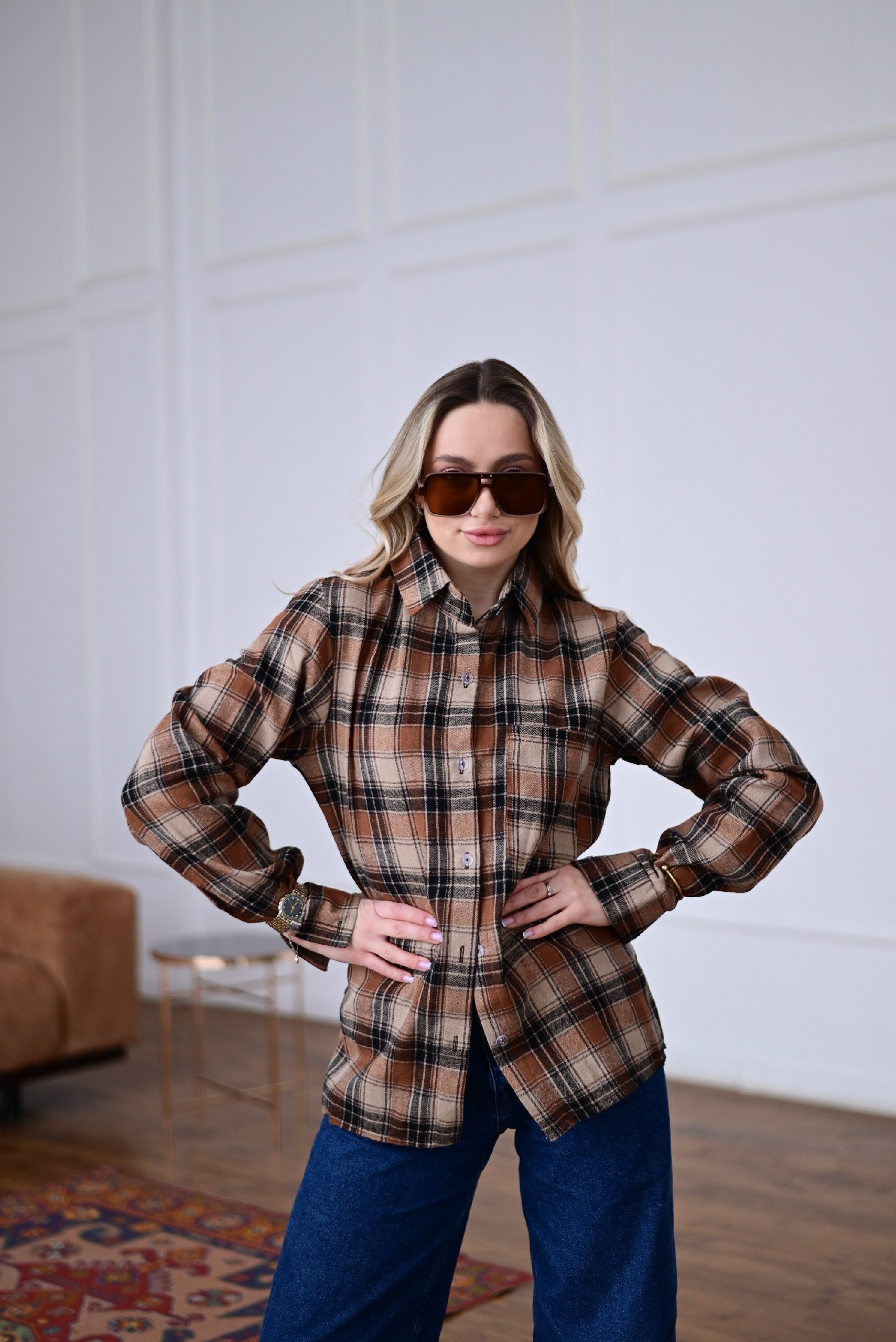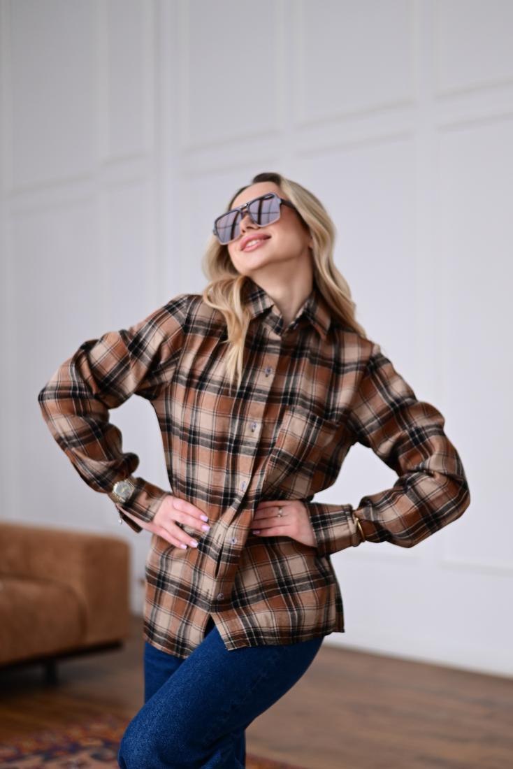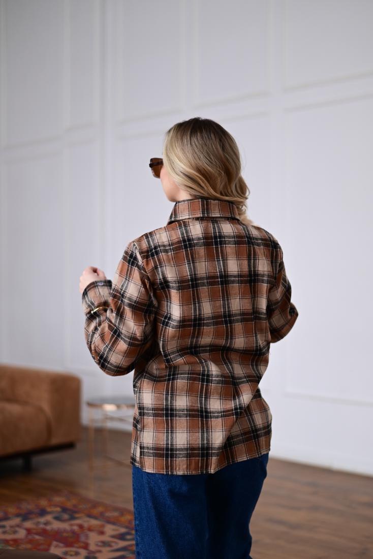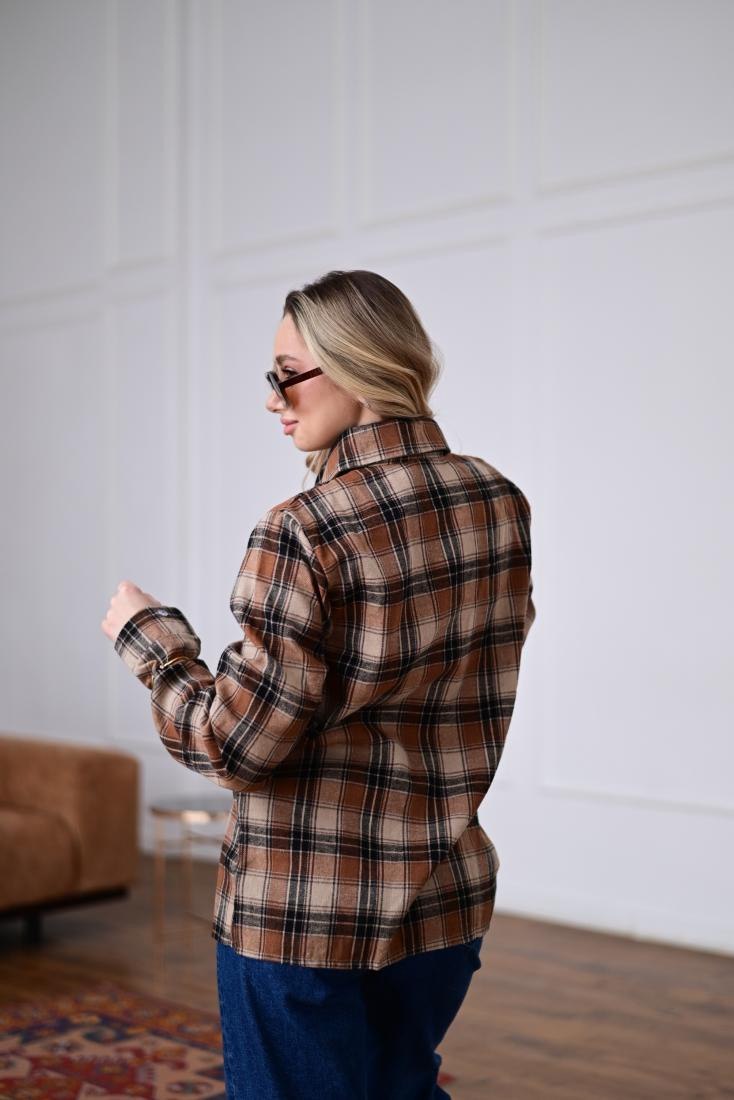 Женская Свободная Байковая Клетчатая Терракотовая Рубашка