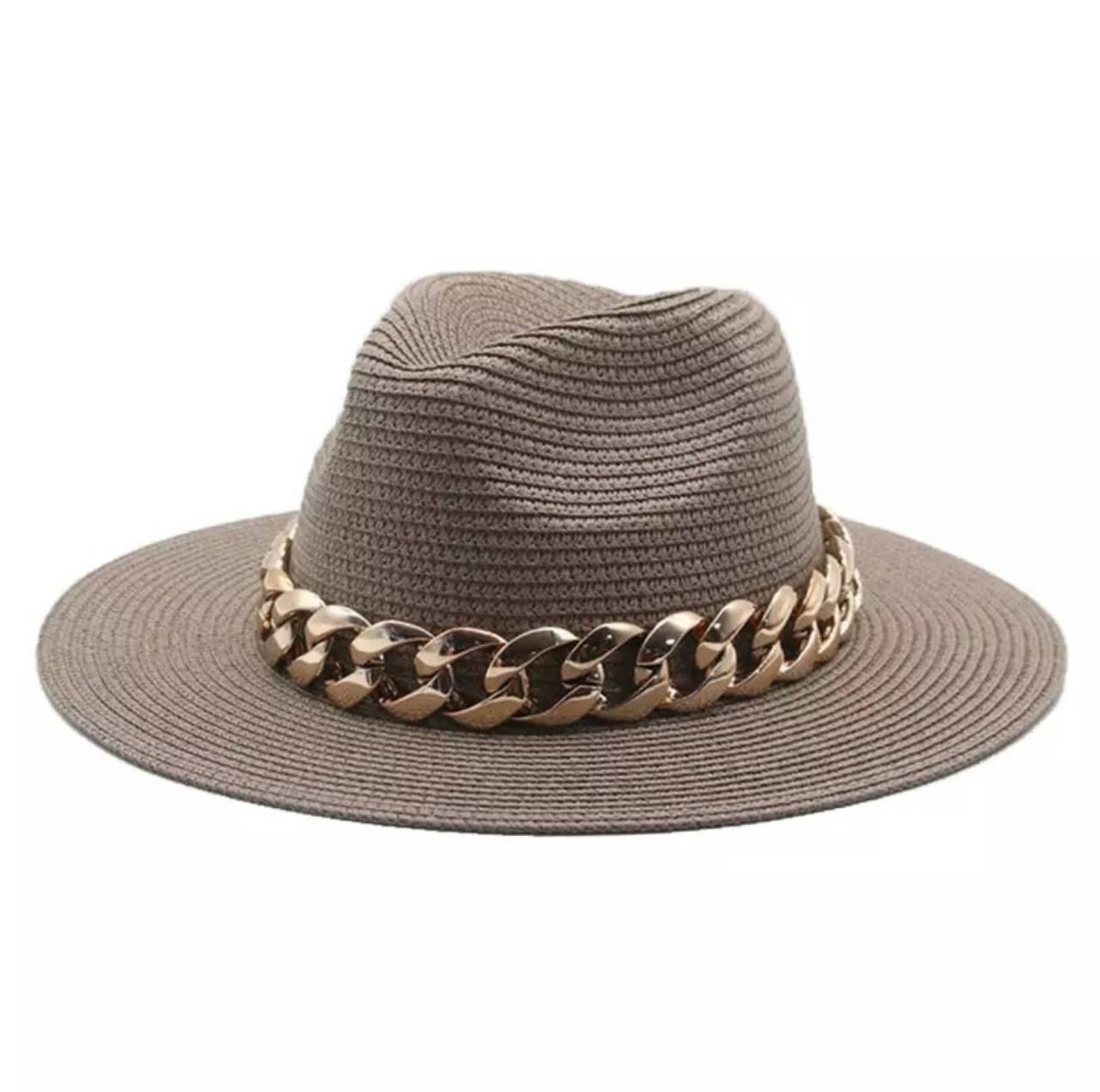 Женская Соломенная Коричневая Мокко Шляпка Федора с Цепочкой