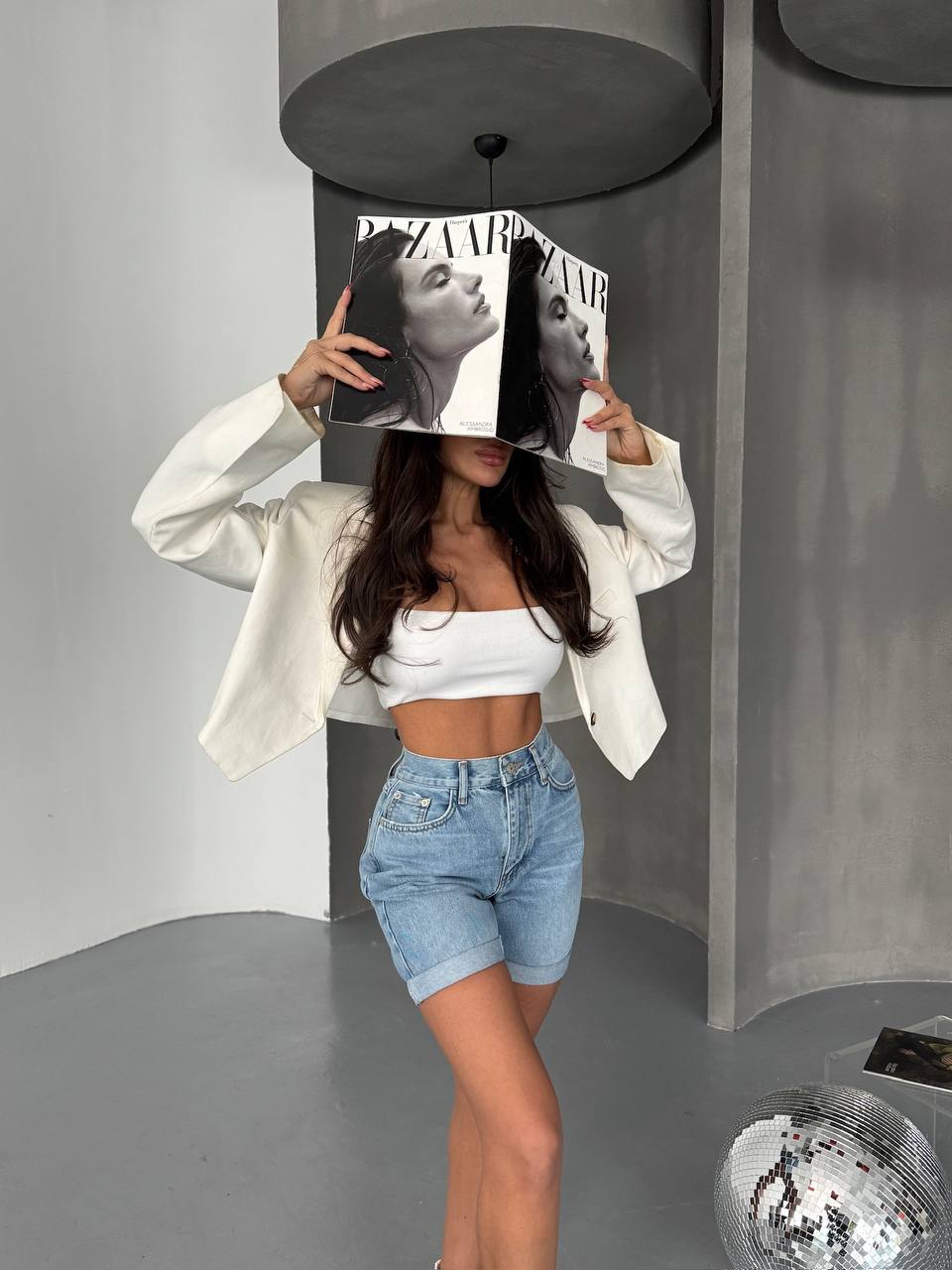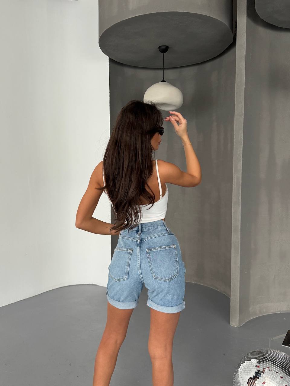 Женские Базовые Голубые Джинсовые Шорты с Подворотами