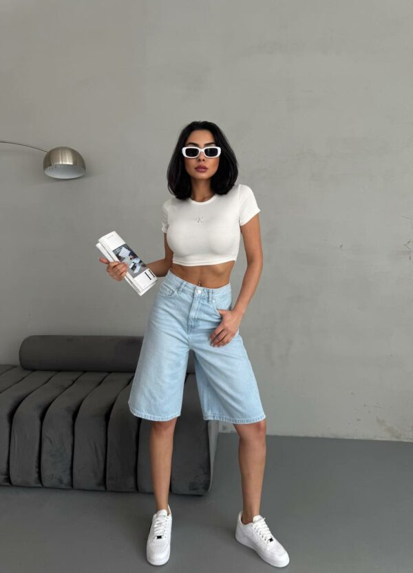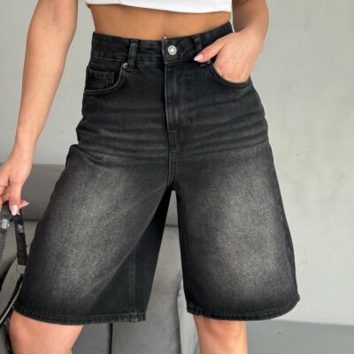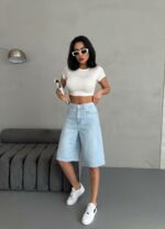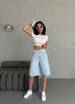 Женские Голубые Джинсовые Шорты Бермуды – Удлиненные Широкого Кроя с Высокой Посадкой