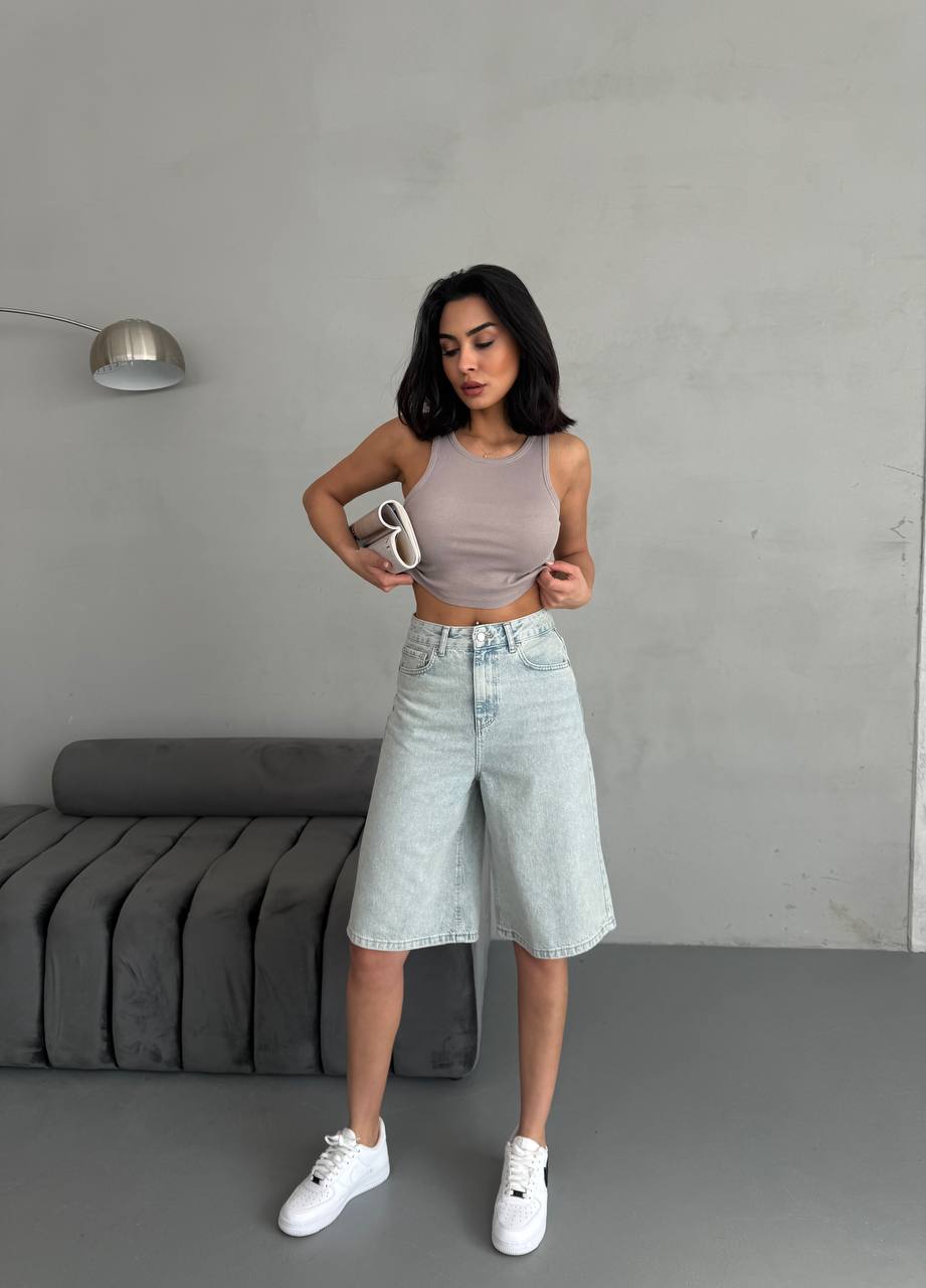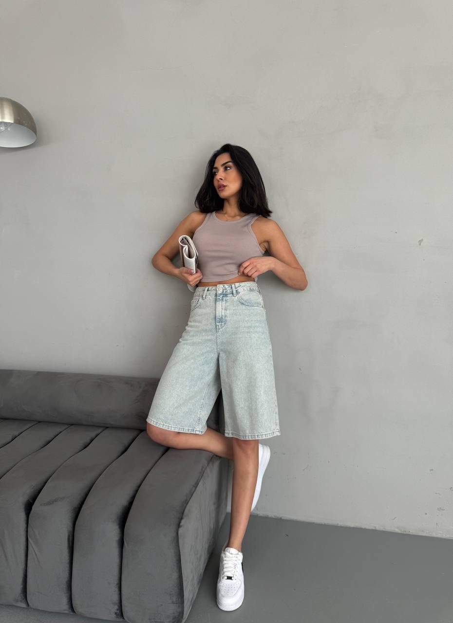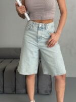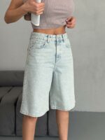 Женские Светло-Голубые Джинсовые Шорты Бермуды Свободного Кроя
