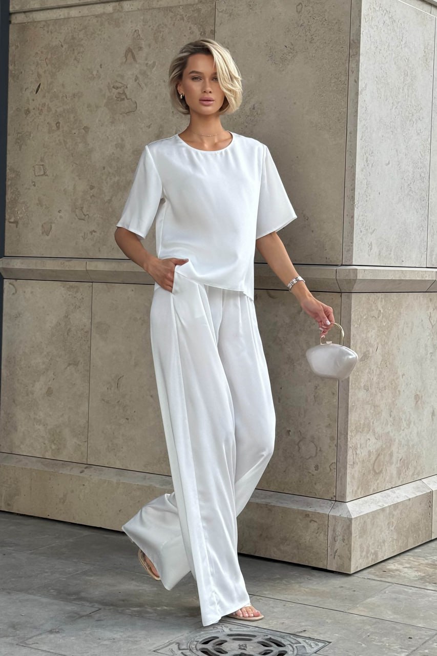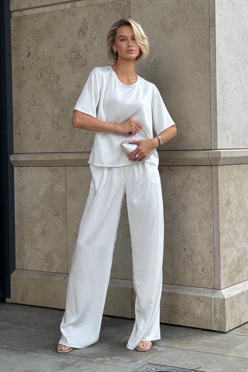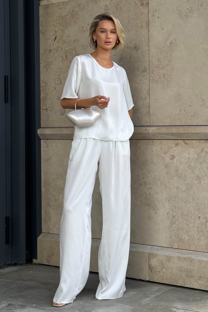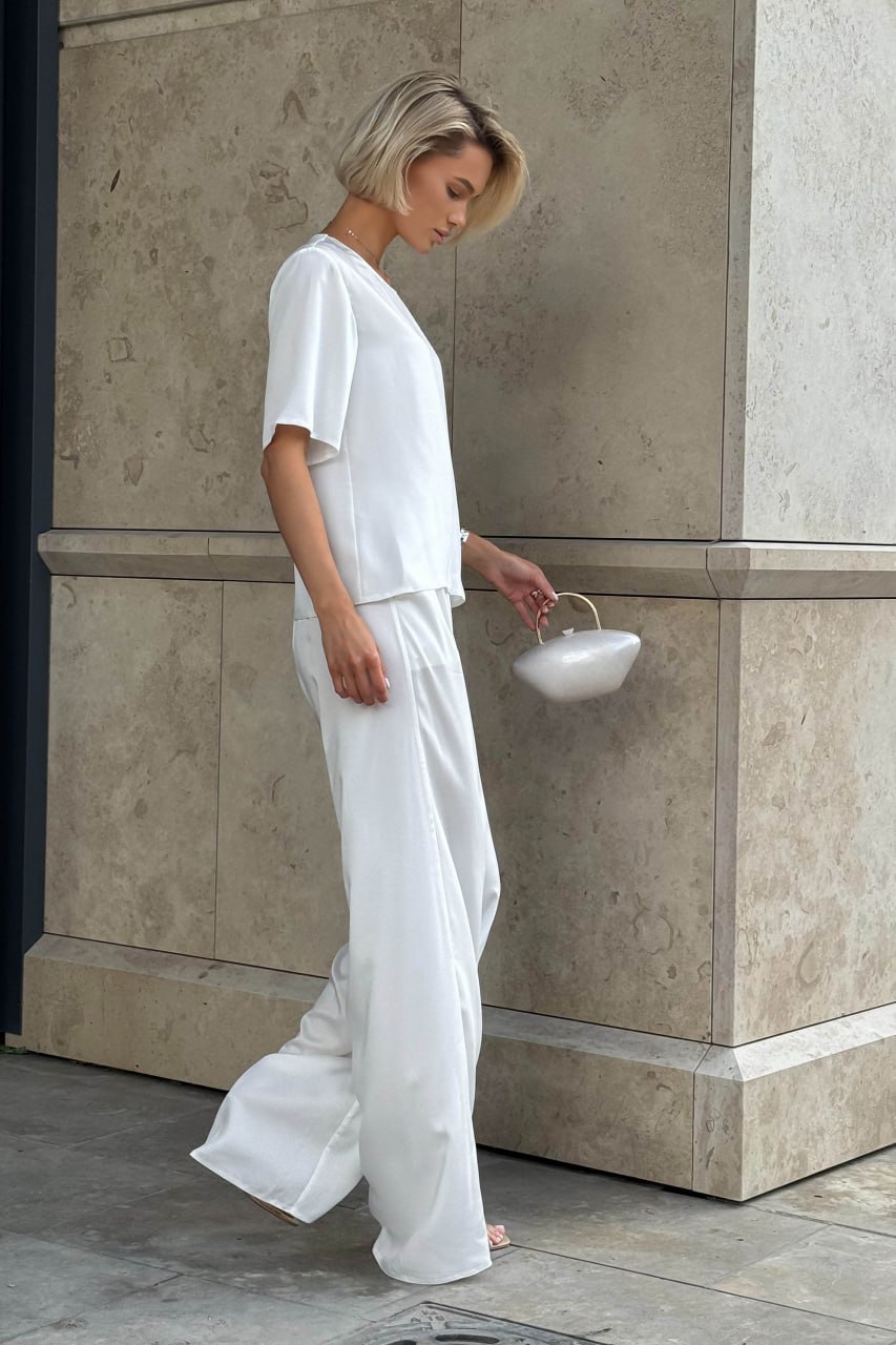 Женские Шелковые Белые Брюки Вир Палаццо на Резинке