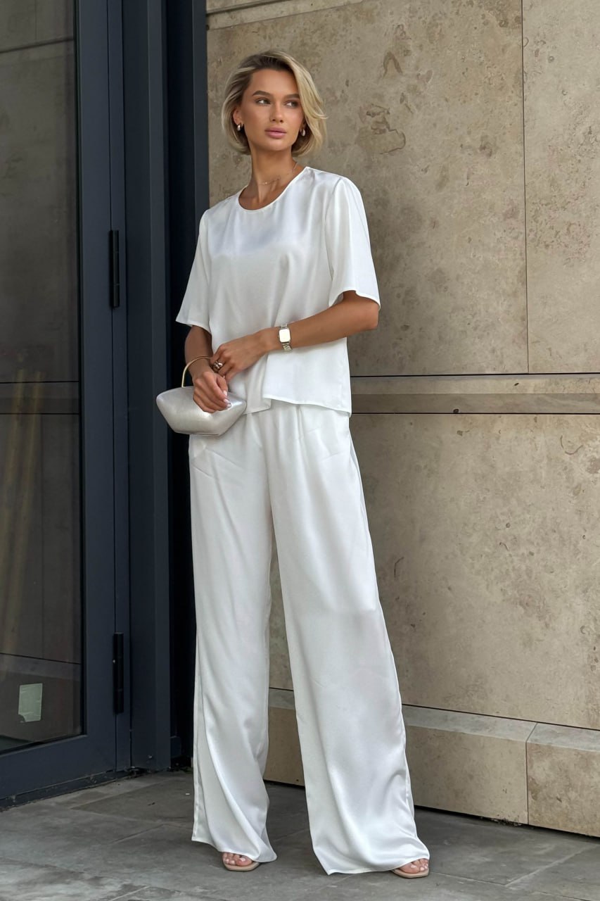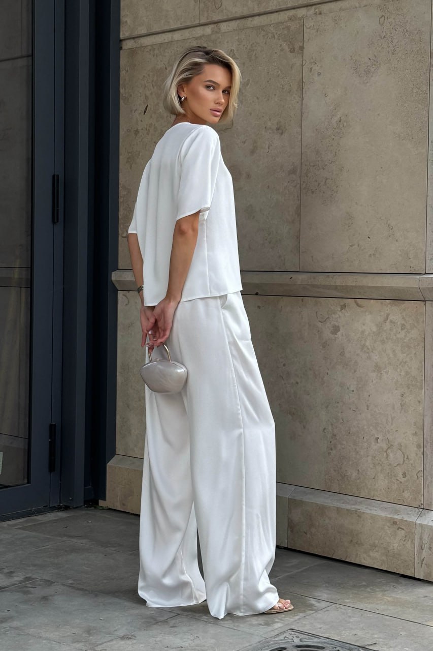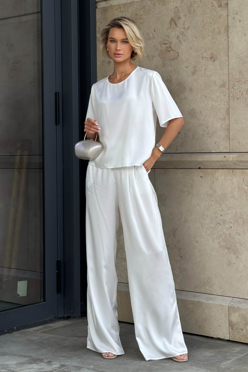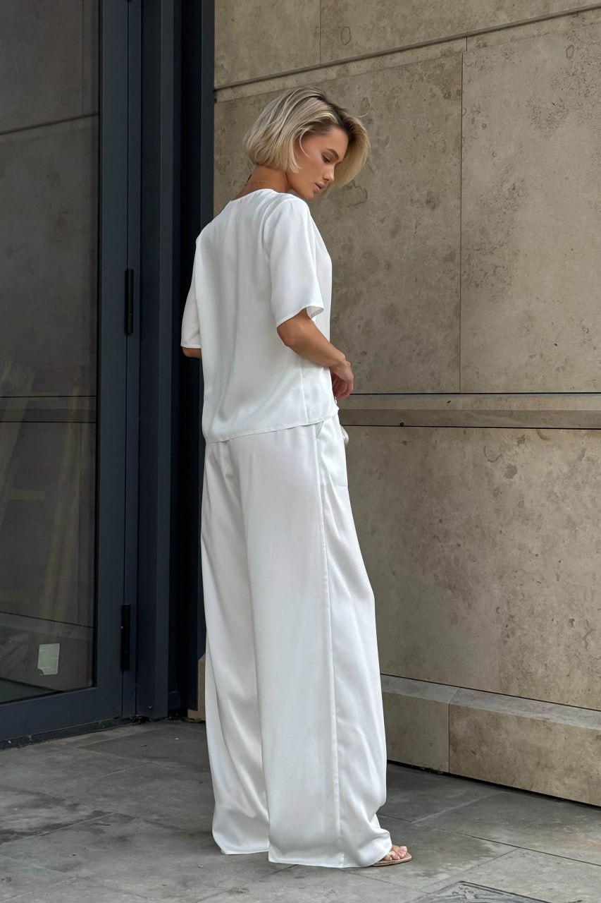 Женские Шелковые Белые Брюки Вир Палаццо на Резинке