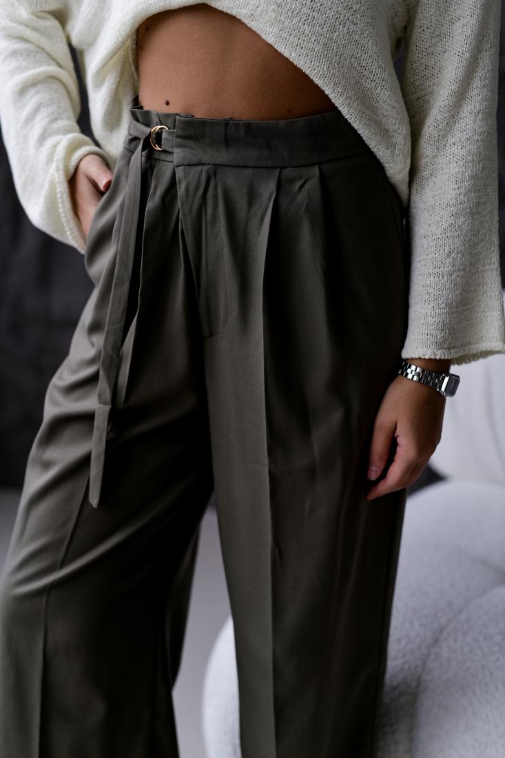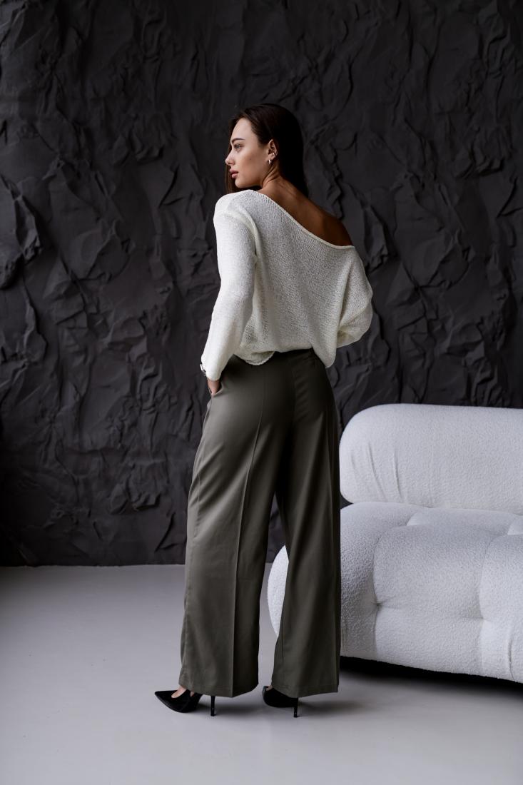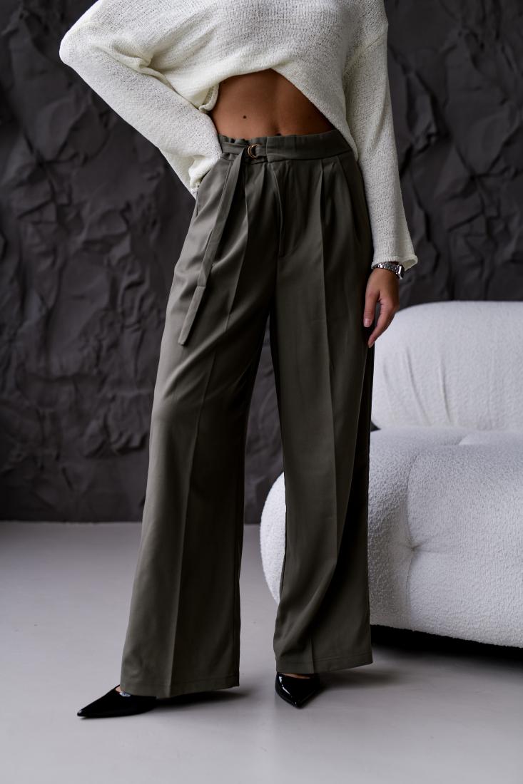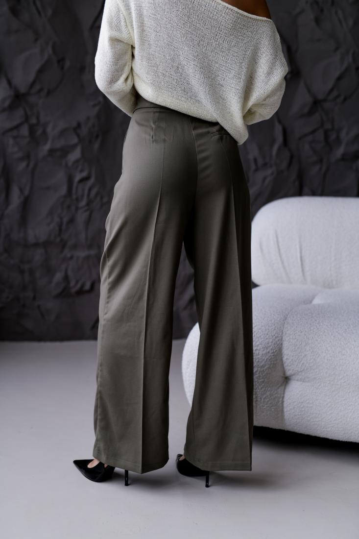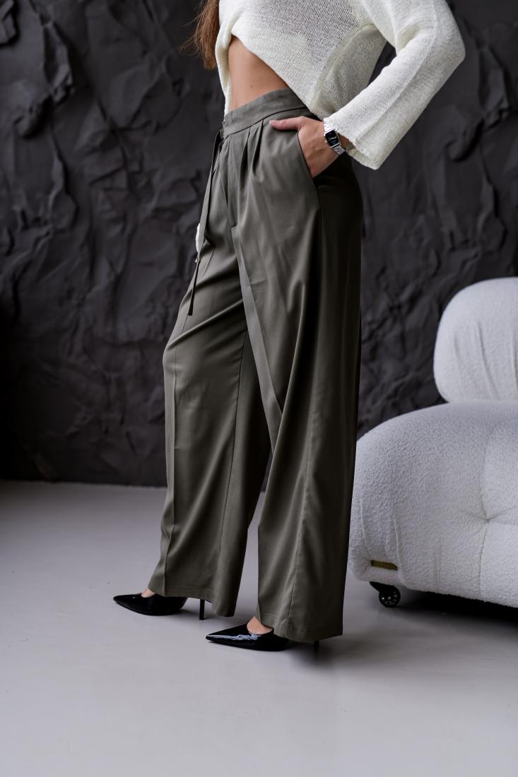 Женские Широкие Штаны Брюки Хаки Палаццо со Стрелками