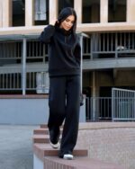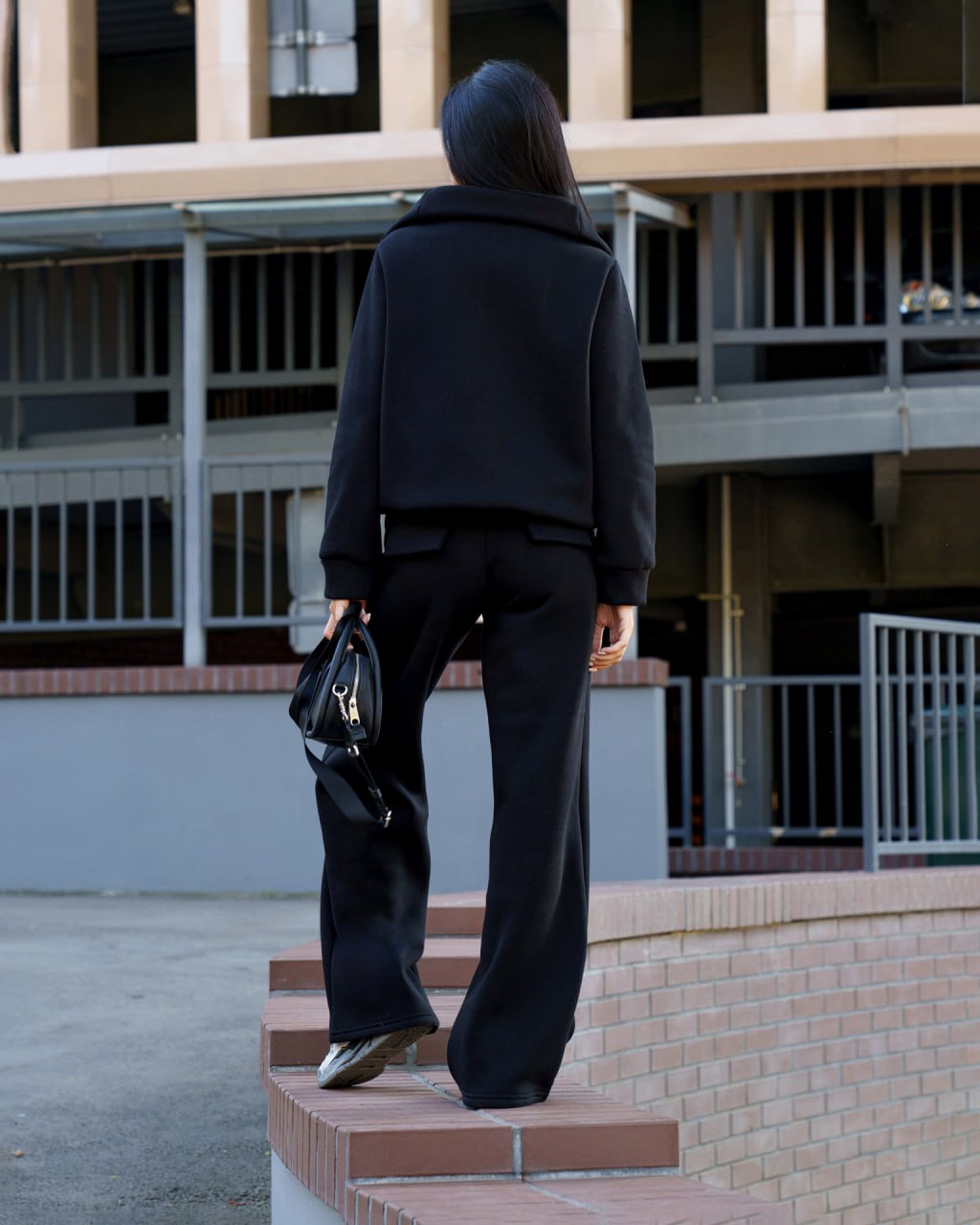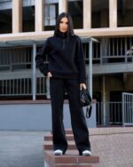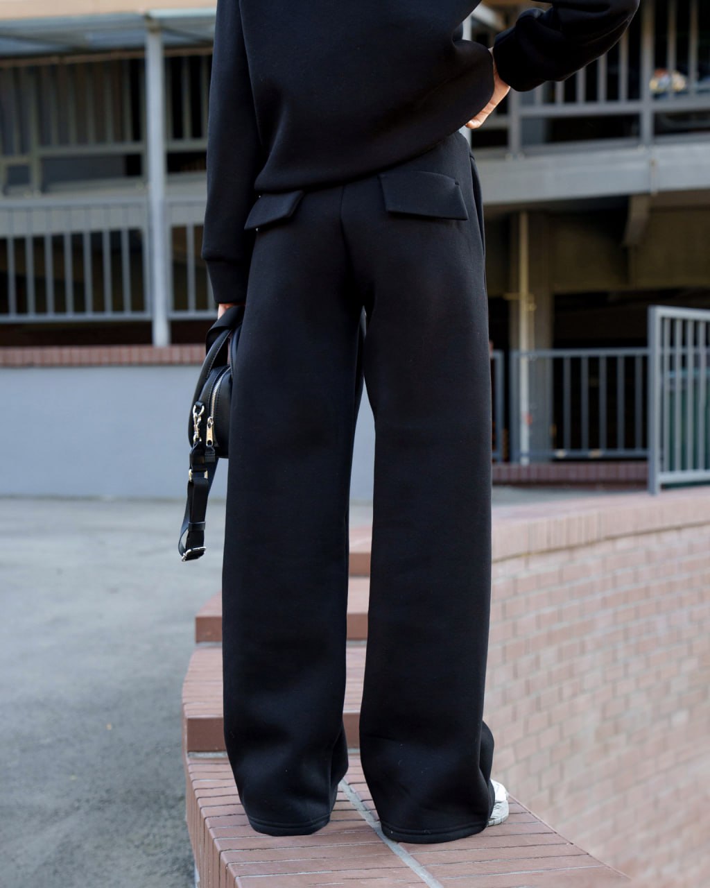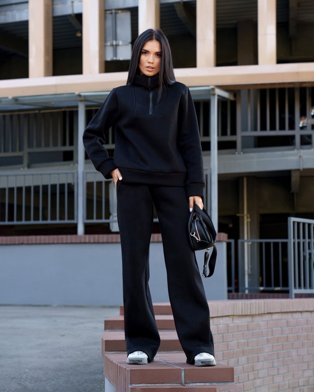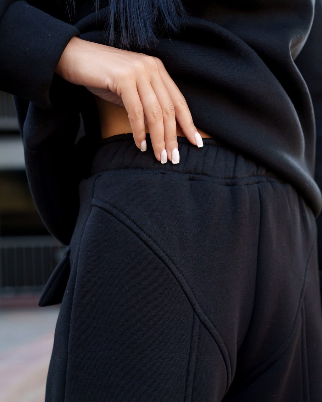 Женские Теплые Черные Брюки Исса на Флисе – Широкие с Декоративными Швами