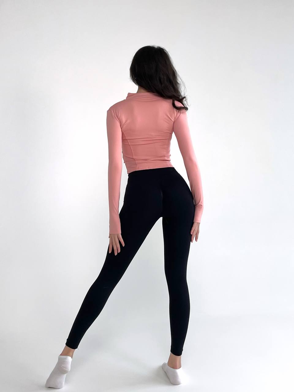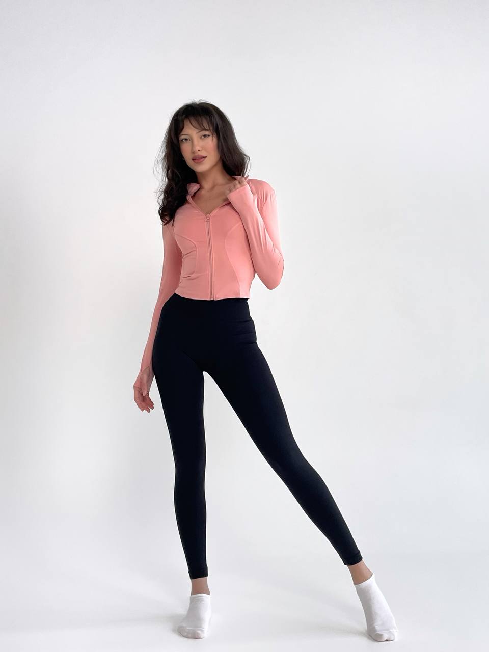 Женская Спортивная Розовая Кофта на Молнии – Кроп Топ с Длинными Рукавами