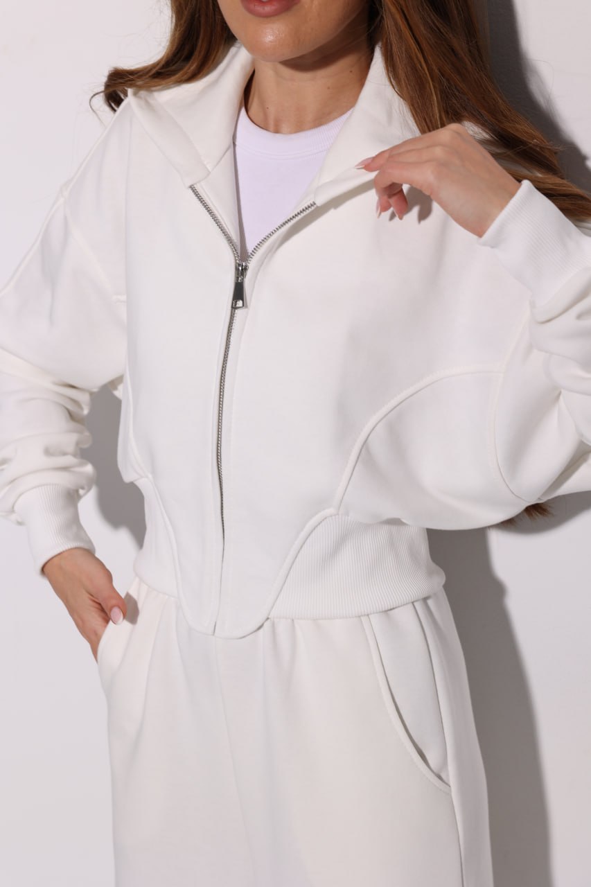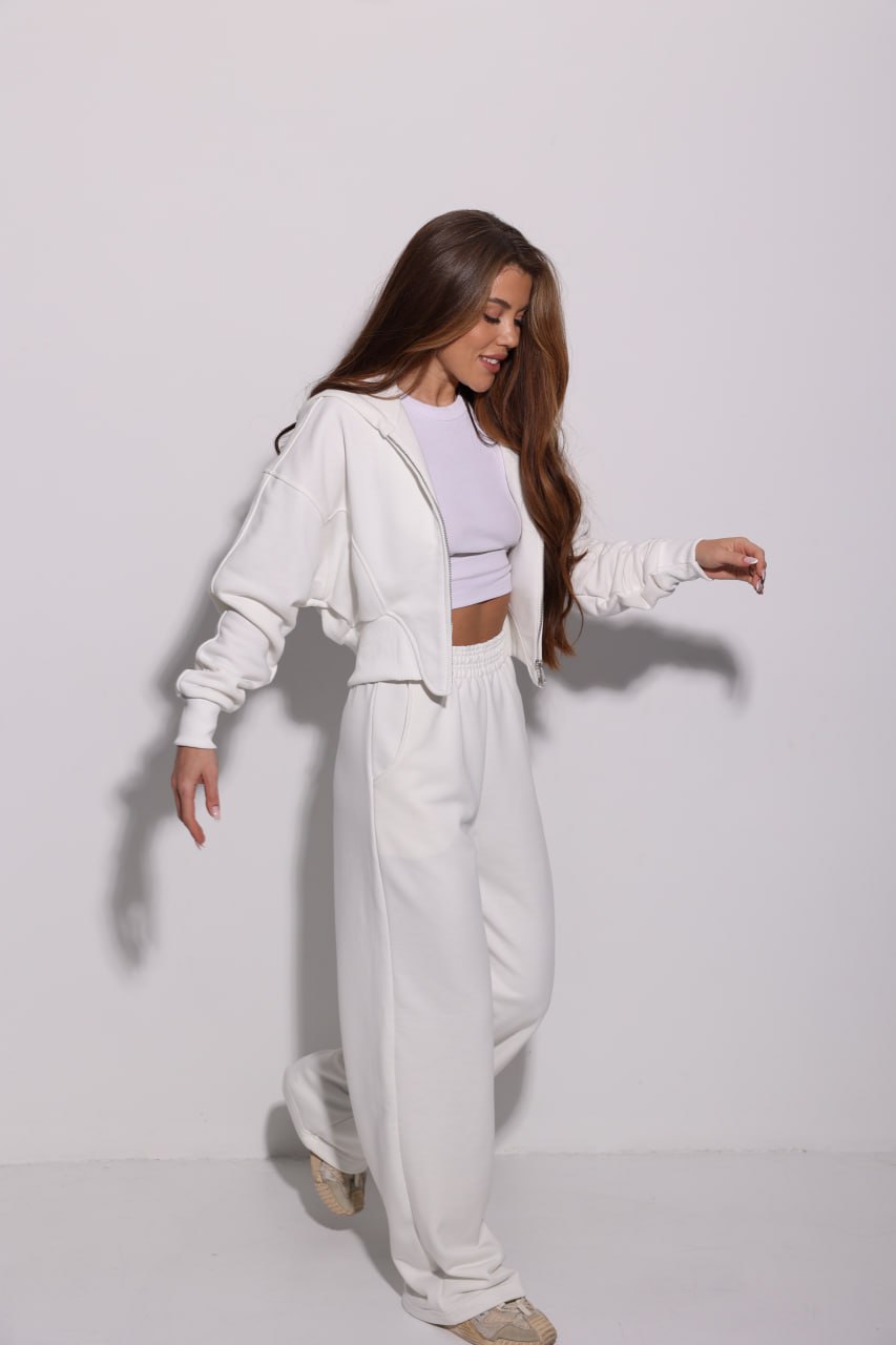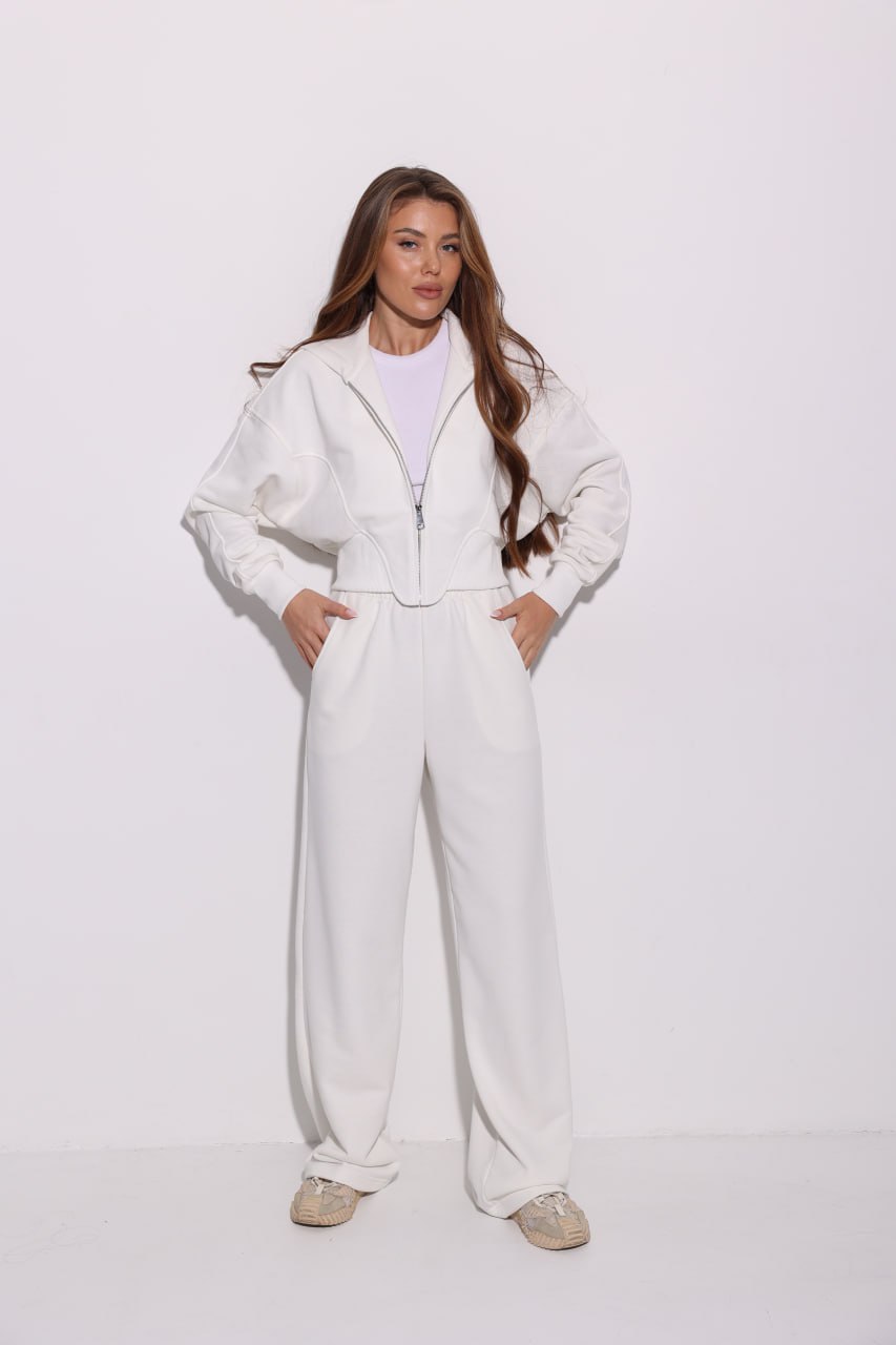 Женский Базовый Молочный Спортивный Костюм на Молнии Оверсайз – Кофта Зипка + Широкие Штаны