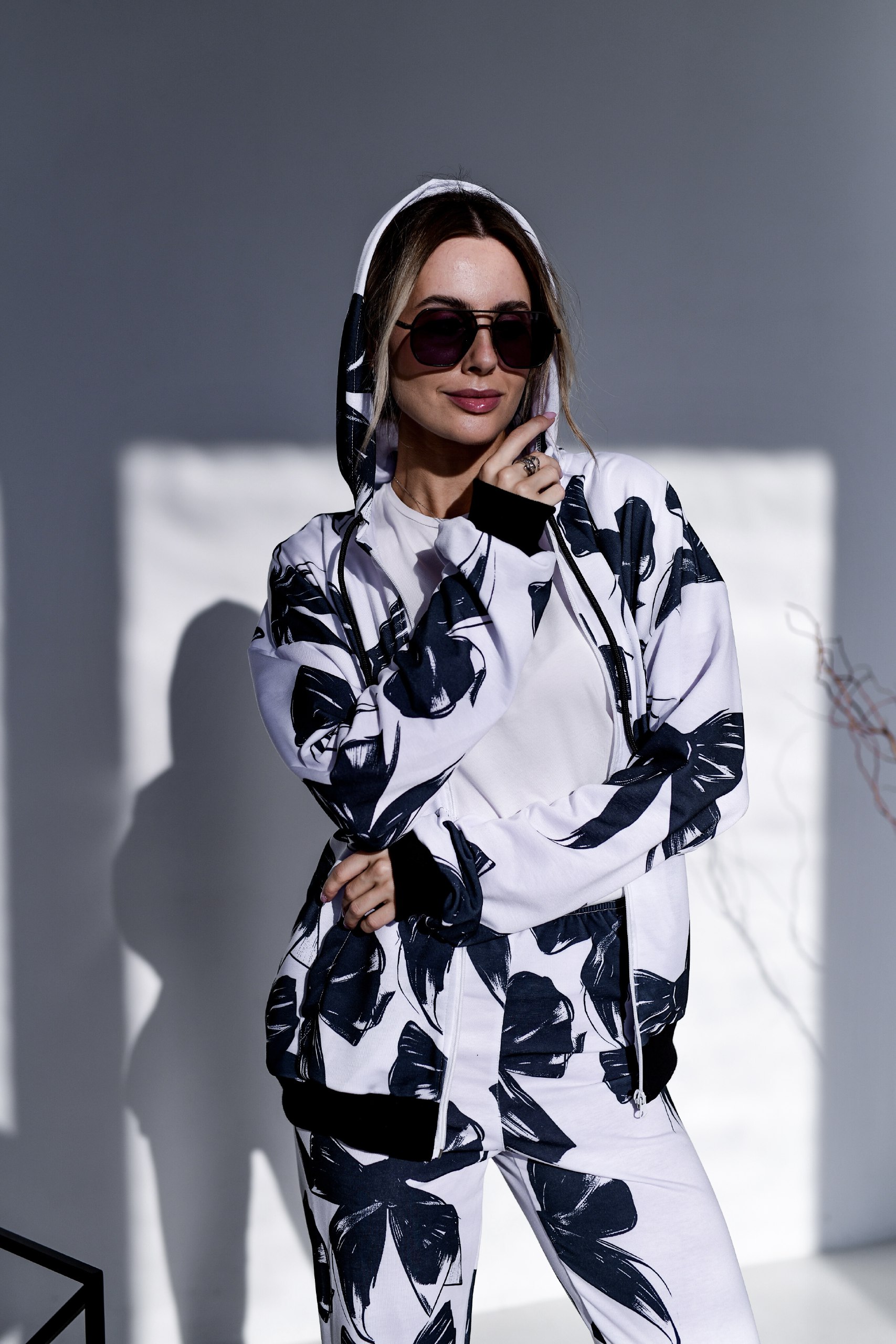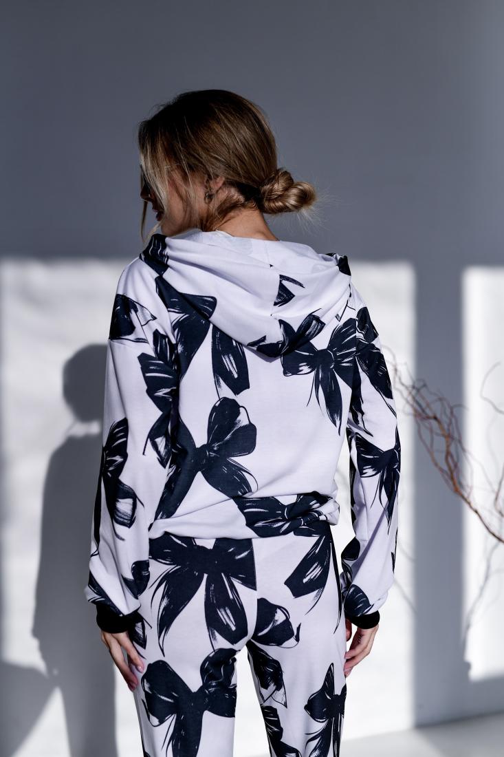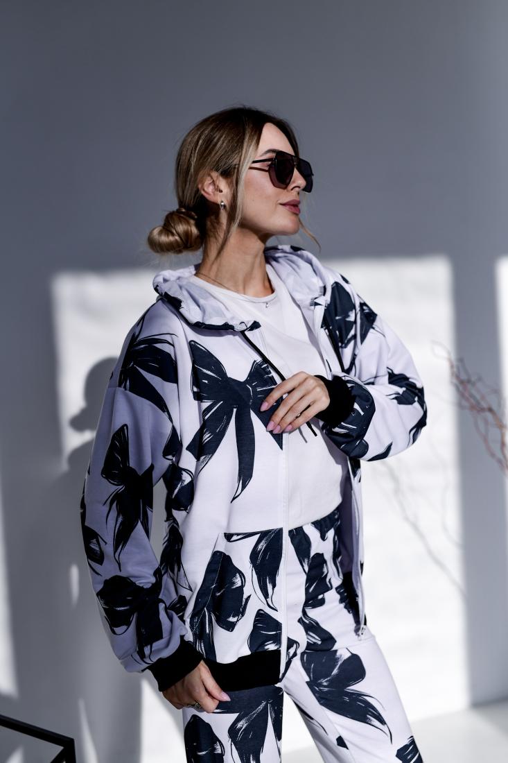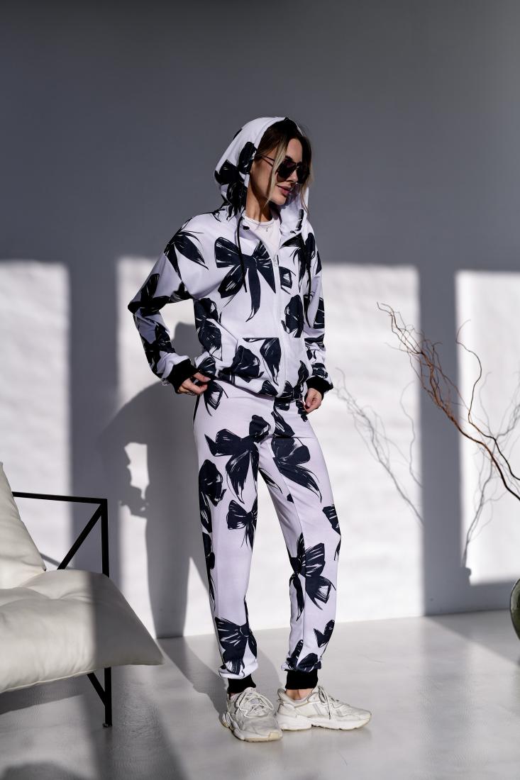 Женский Белый Спортивный Костюм с Бантиками – Зип Кофта на Молнии + Штаны Джоггеры