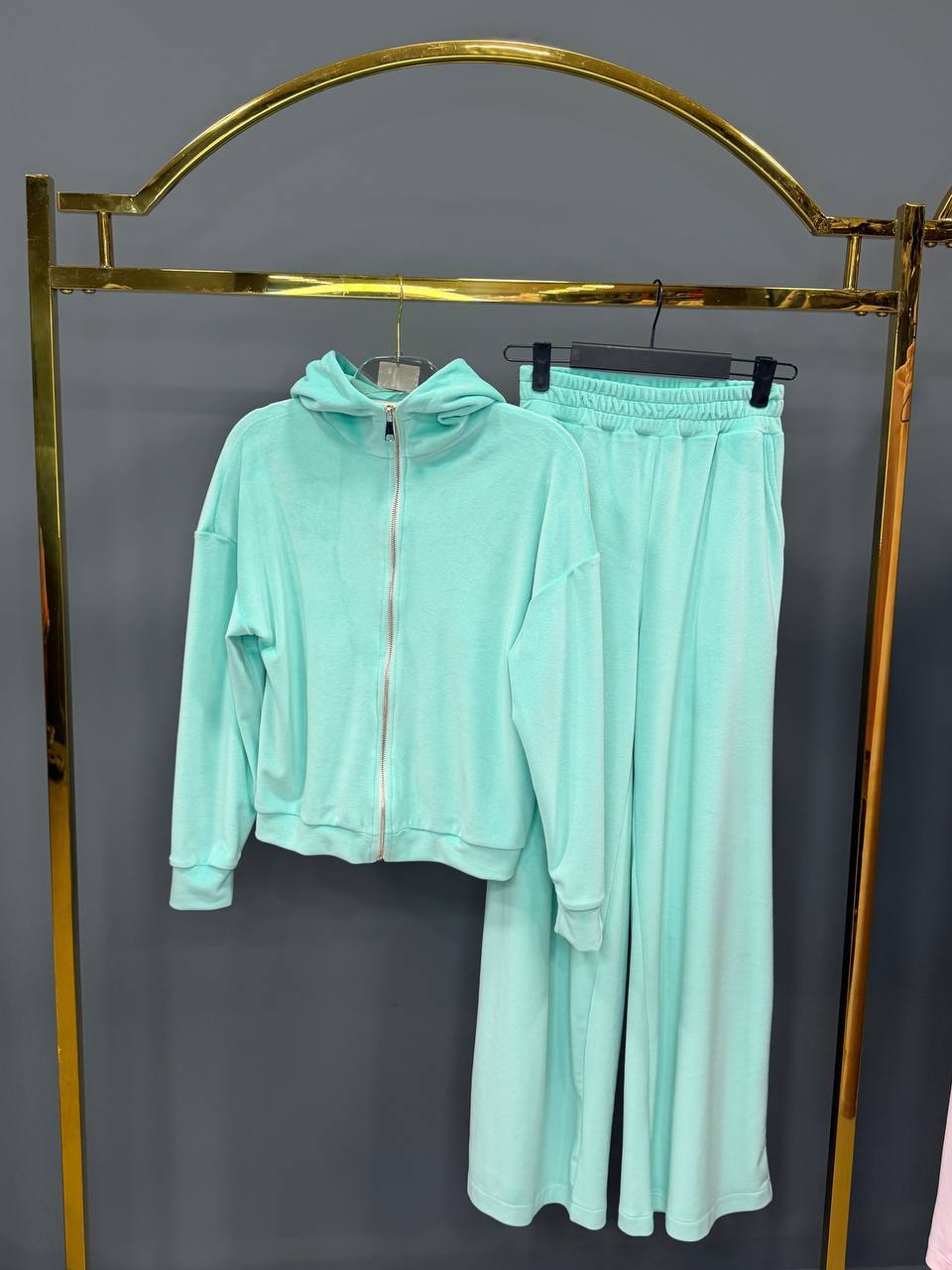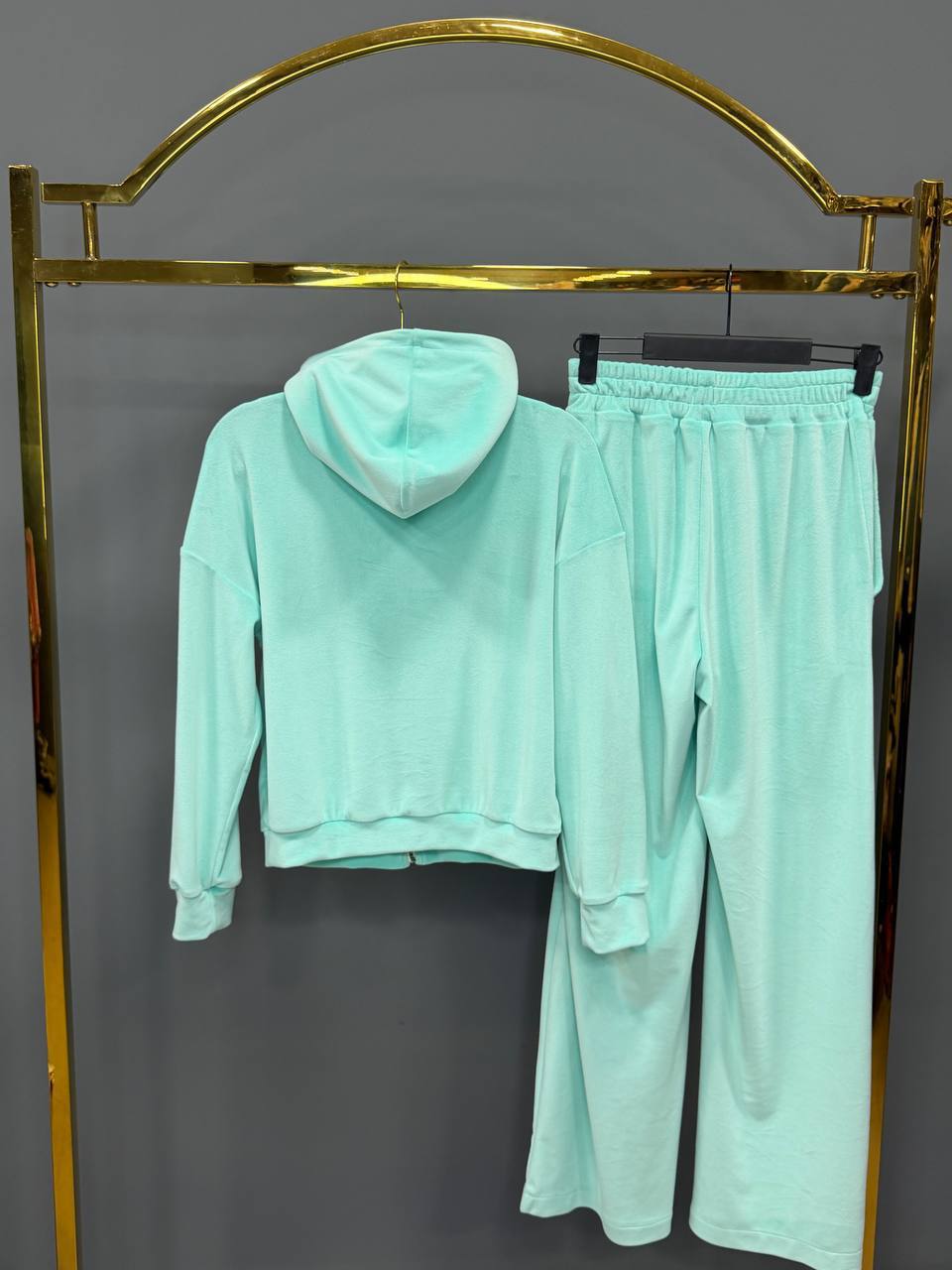 Женский Бирюзовый Велюровый Костюм – Кофта Зипка на Молнии + Штаны Свободного Кроя
