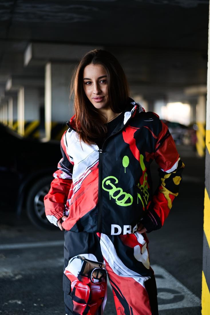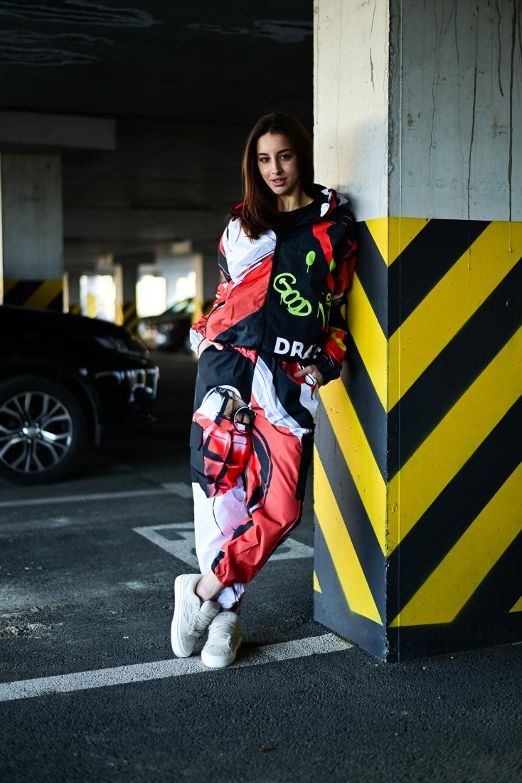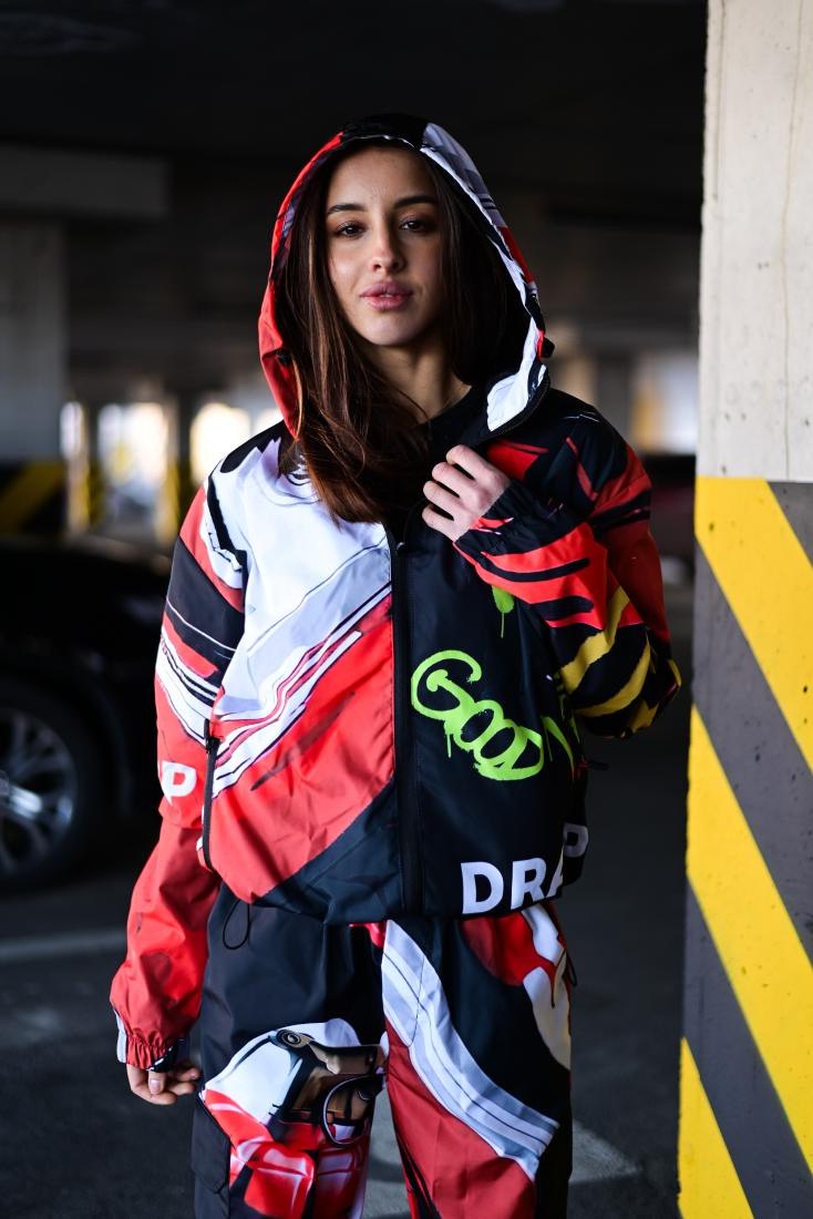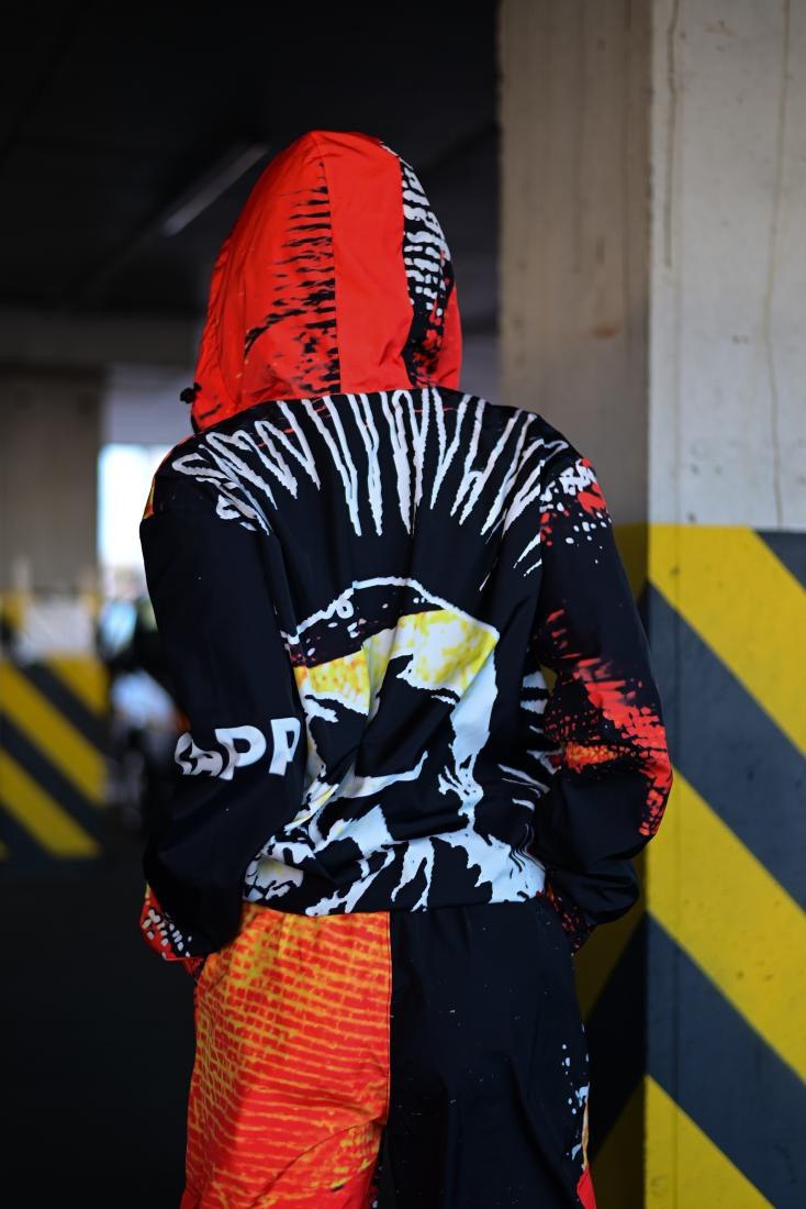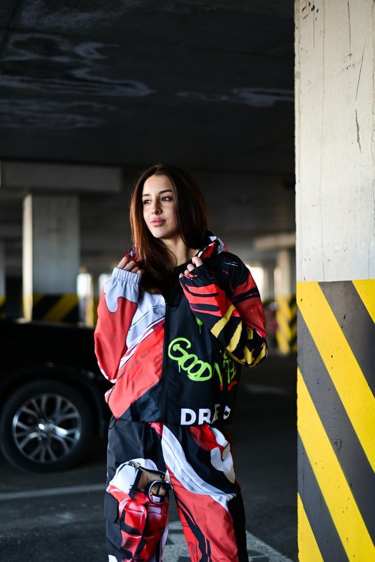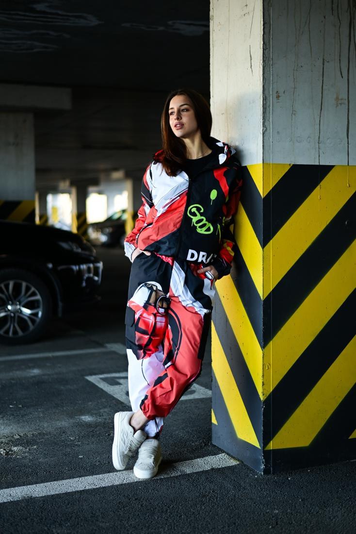 Женский Черно-Красный Спортивный Костюм Плащевка в Принт (Олимпийка + Джоггеры)