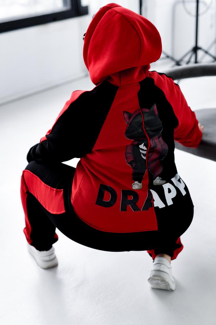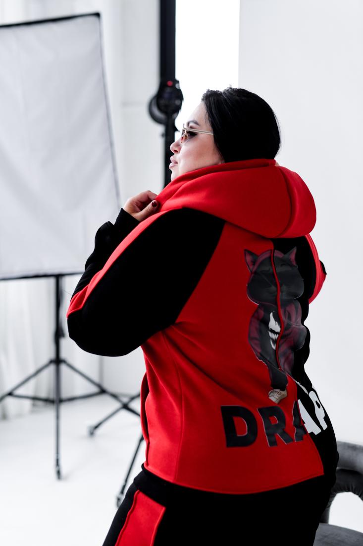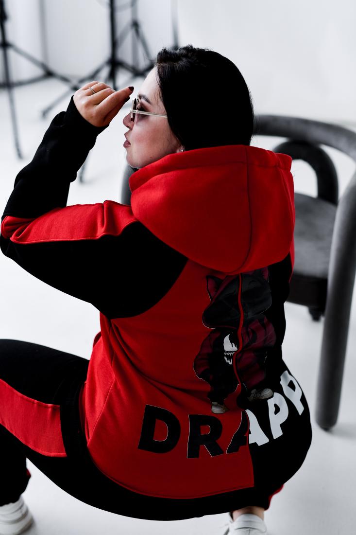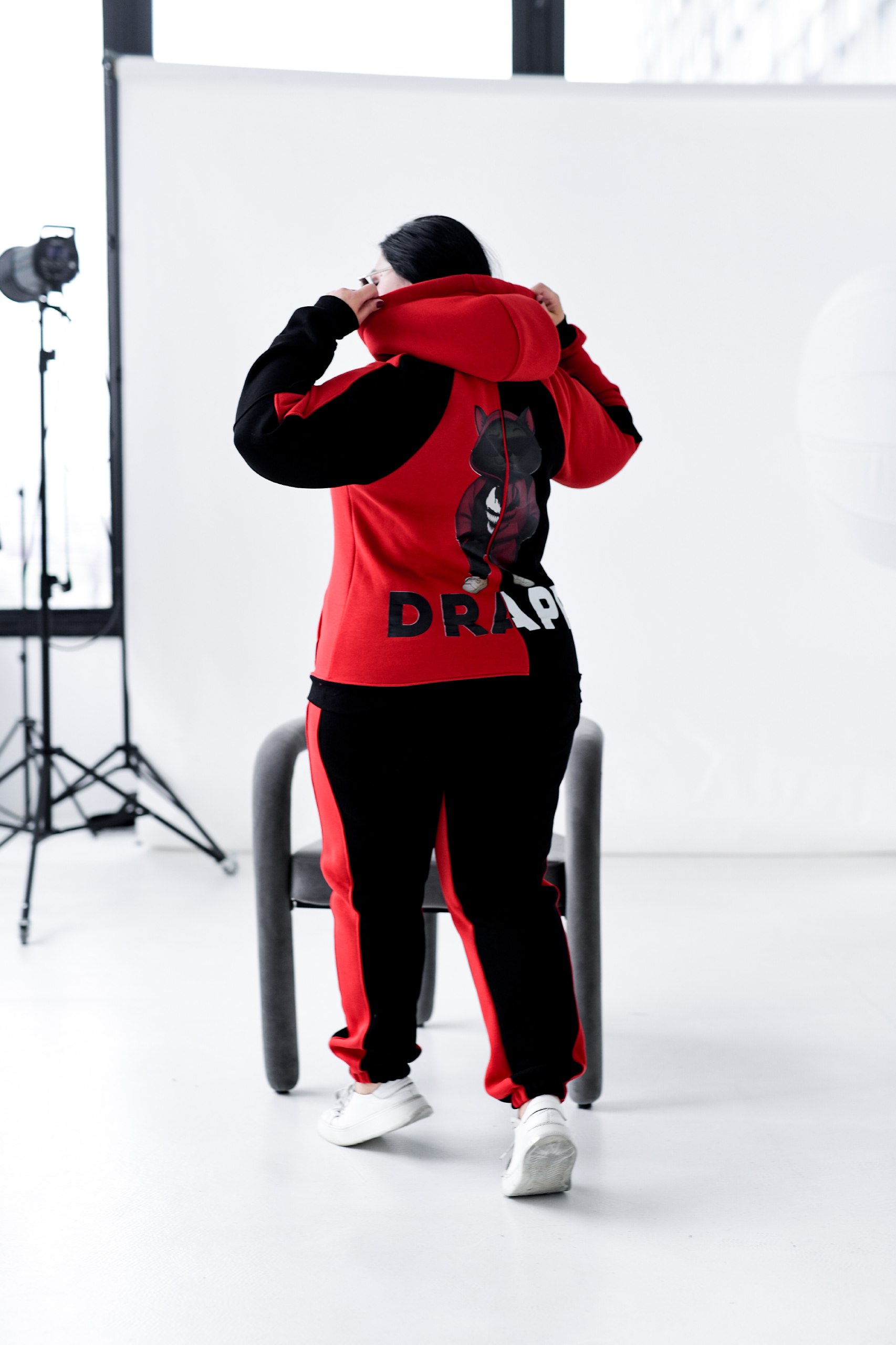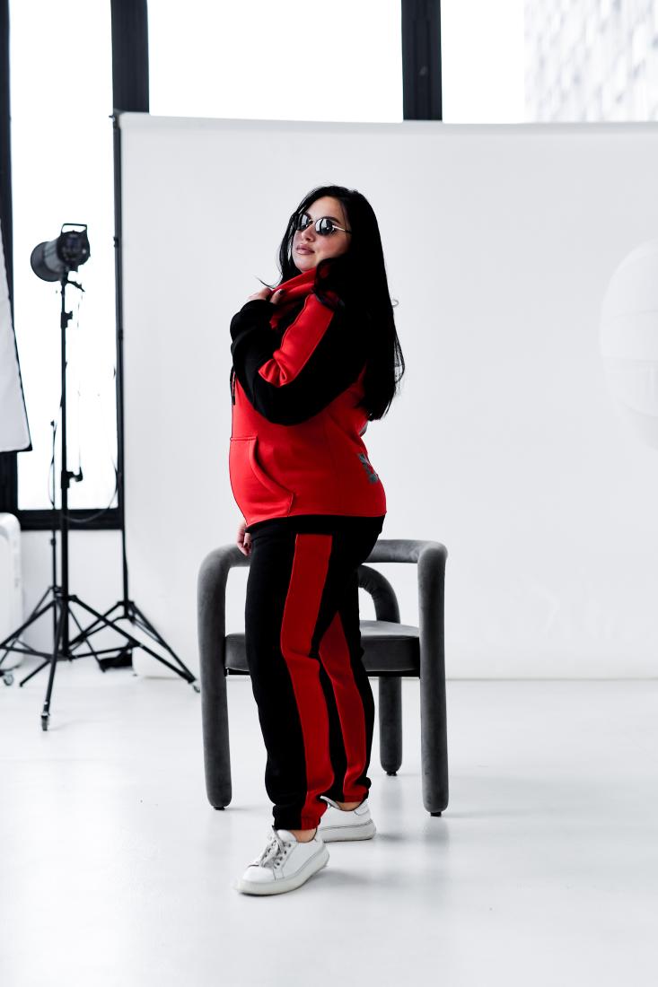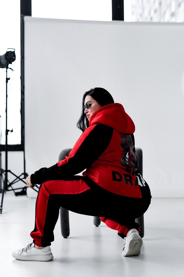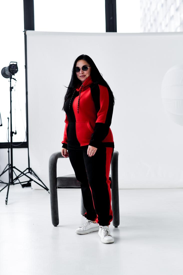 Женский Черно-Красный Спортивный Костюм с Принтом – Утепленный на Флисе