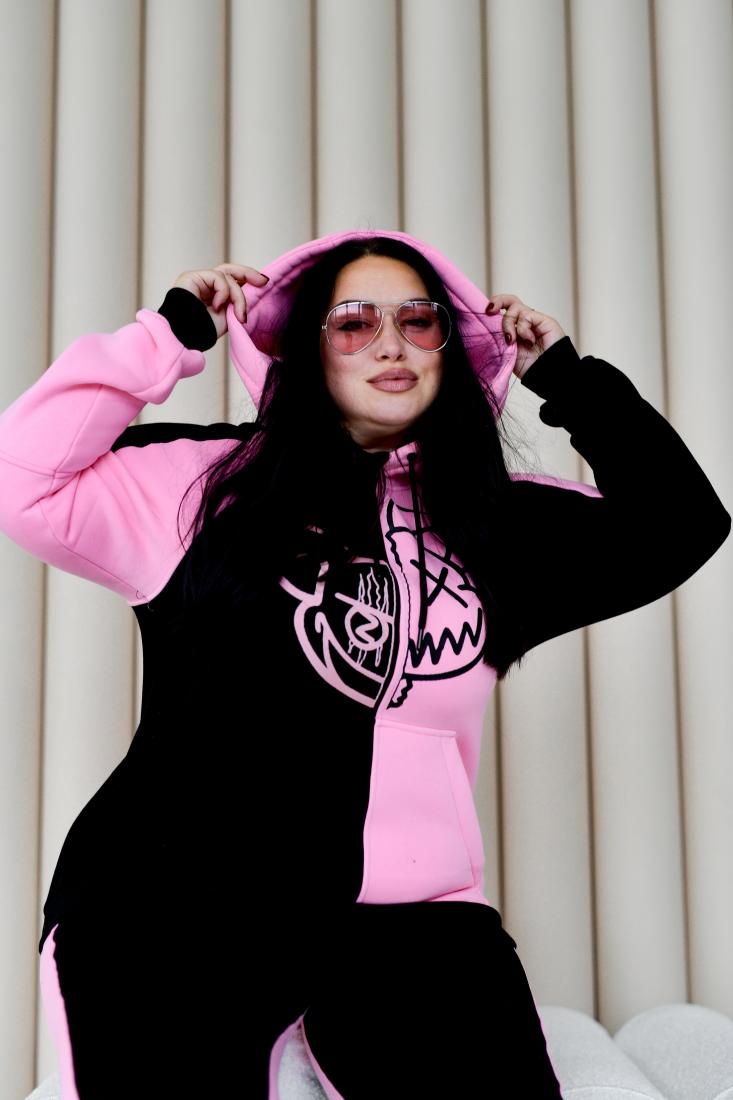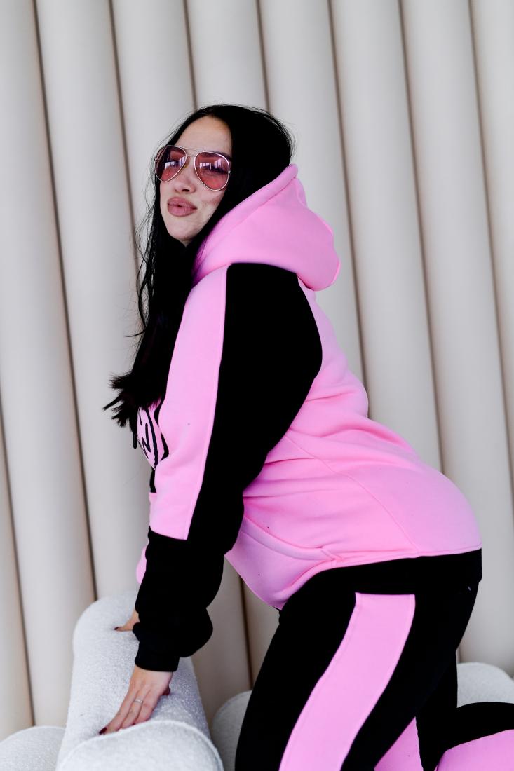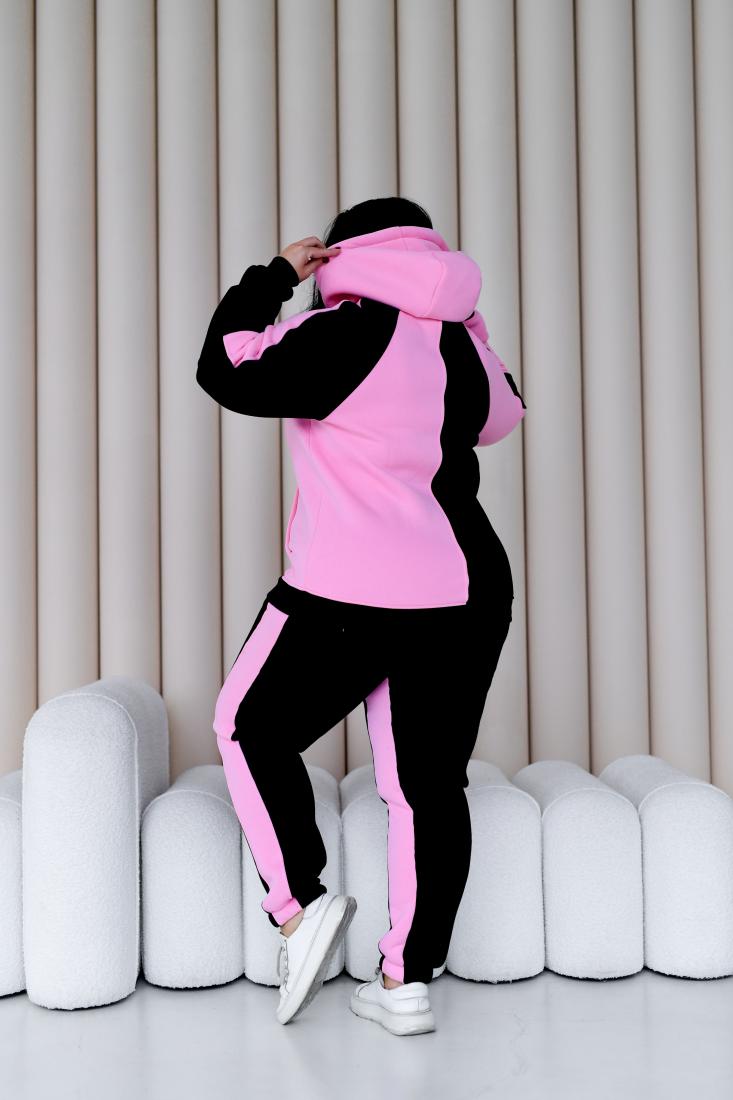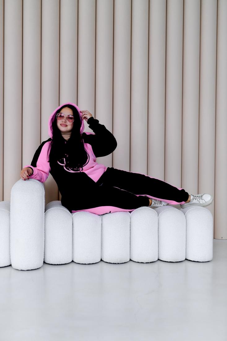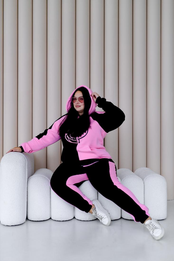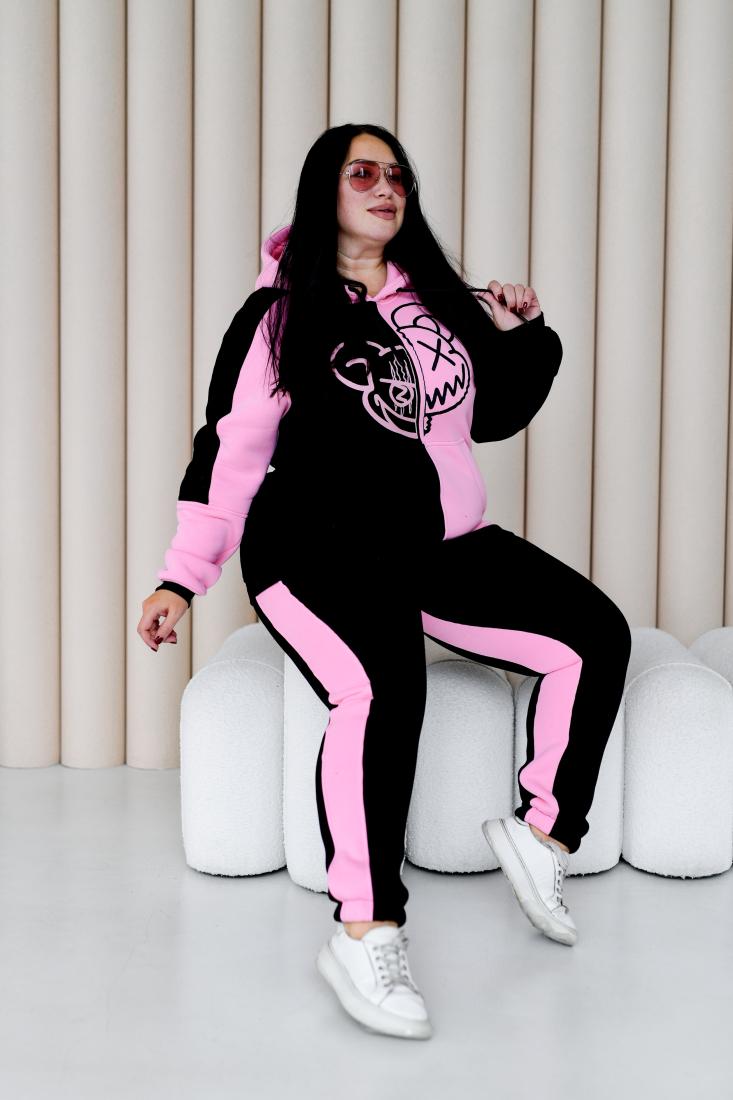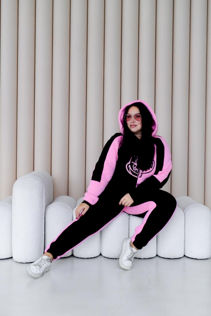 Женский Черно-Розовый Спортивный Костюм с Принтом – Утепленный на Флисе