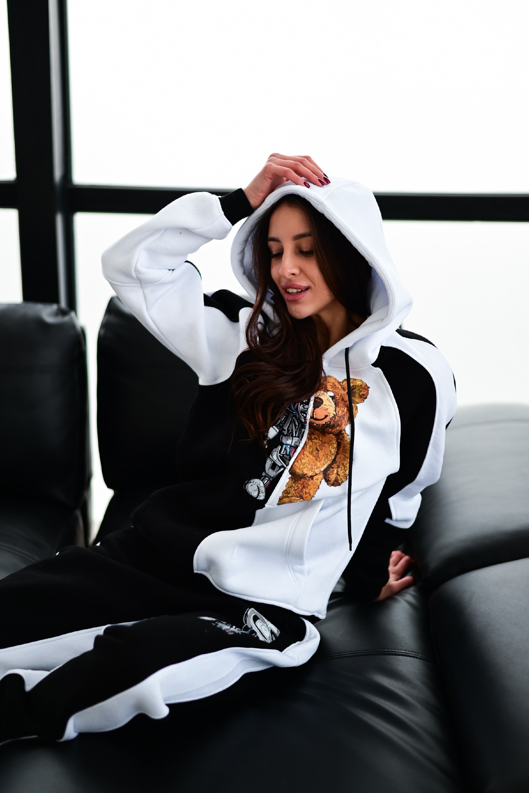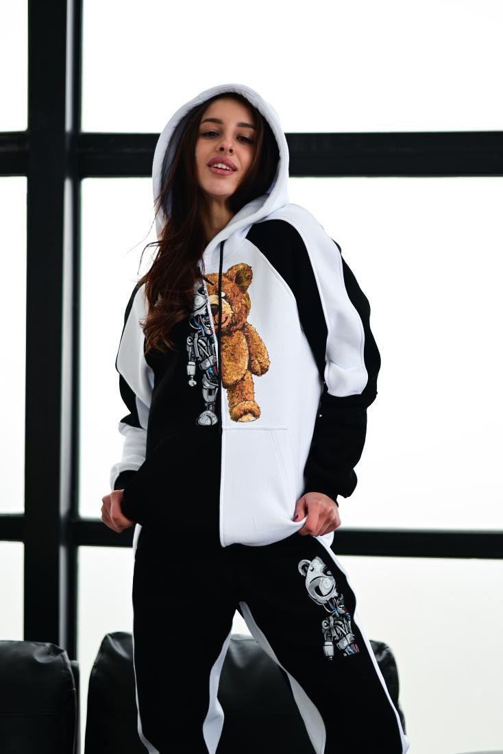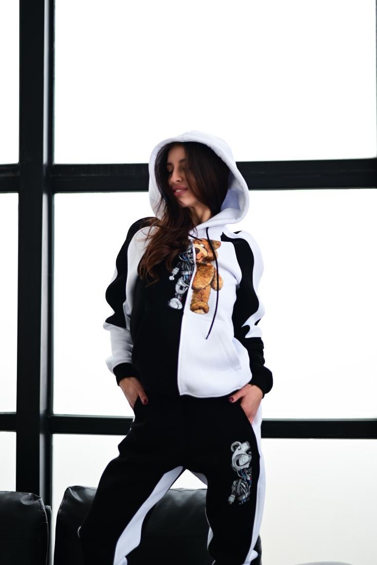 Женский Чорно-Белый Спортивный Костюм с Медведем – Утепленный на Флисе