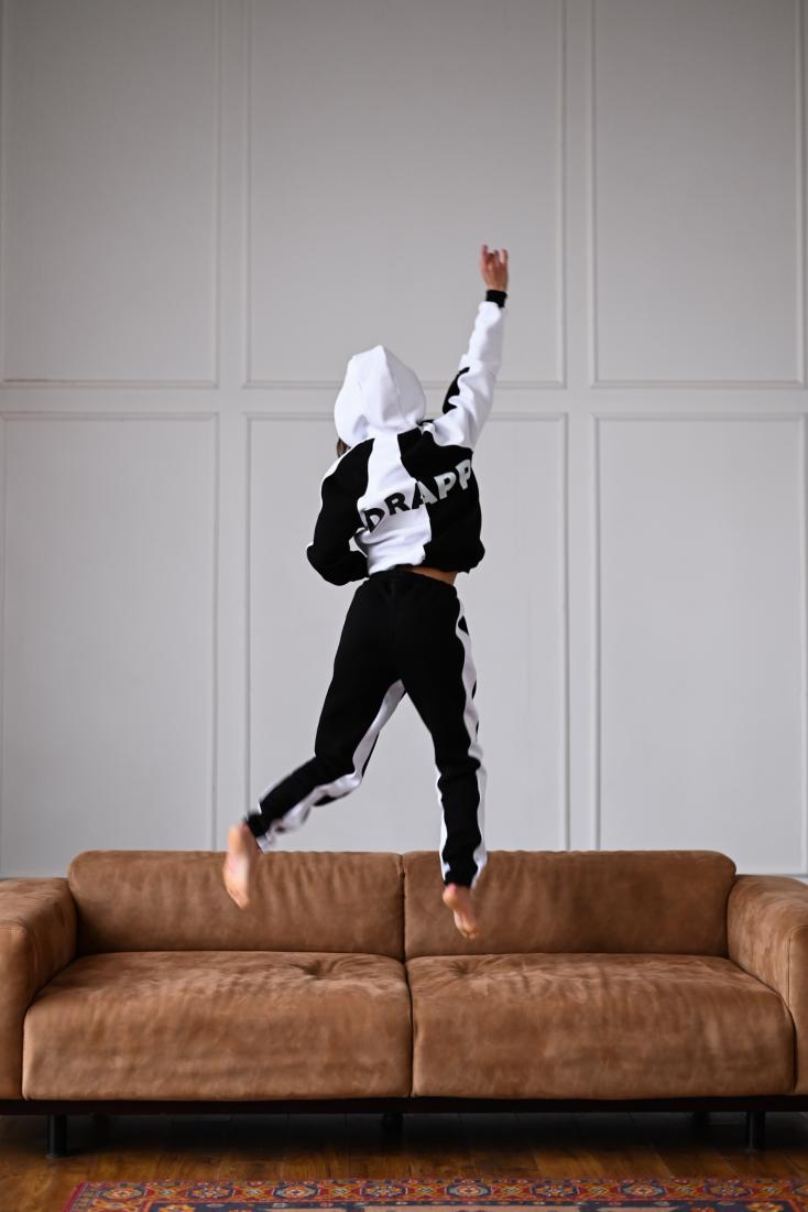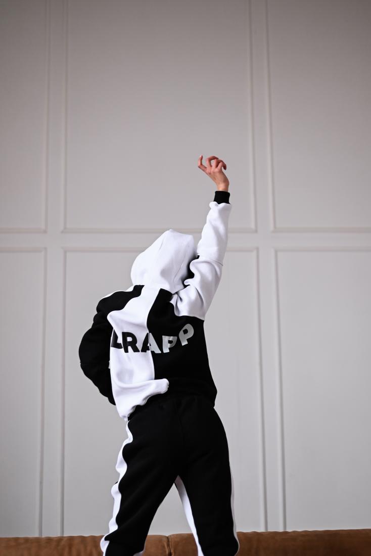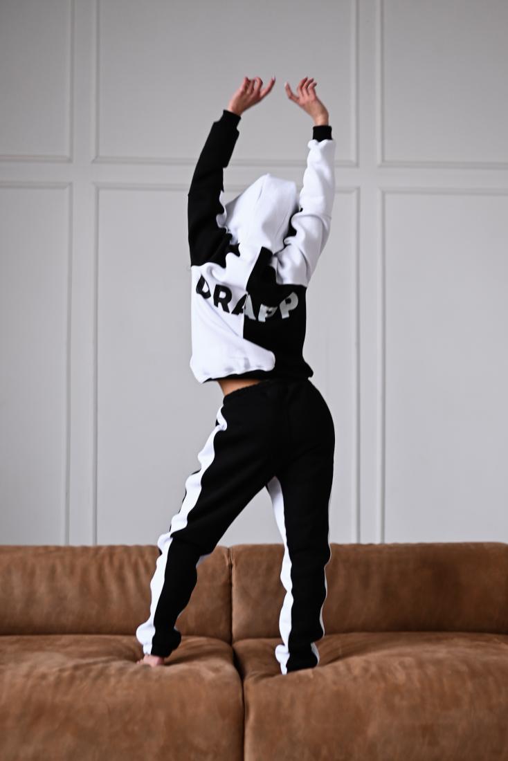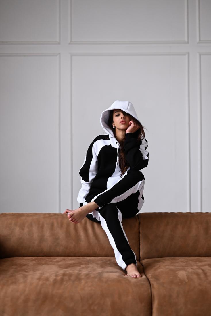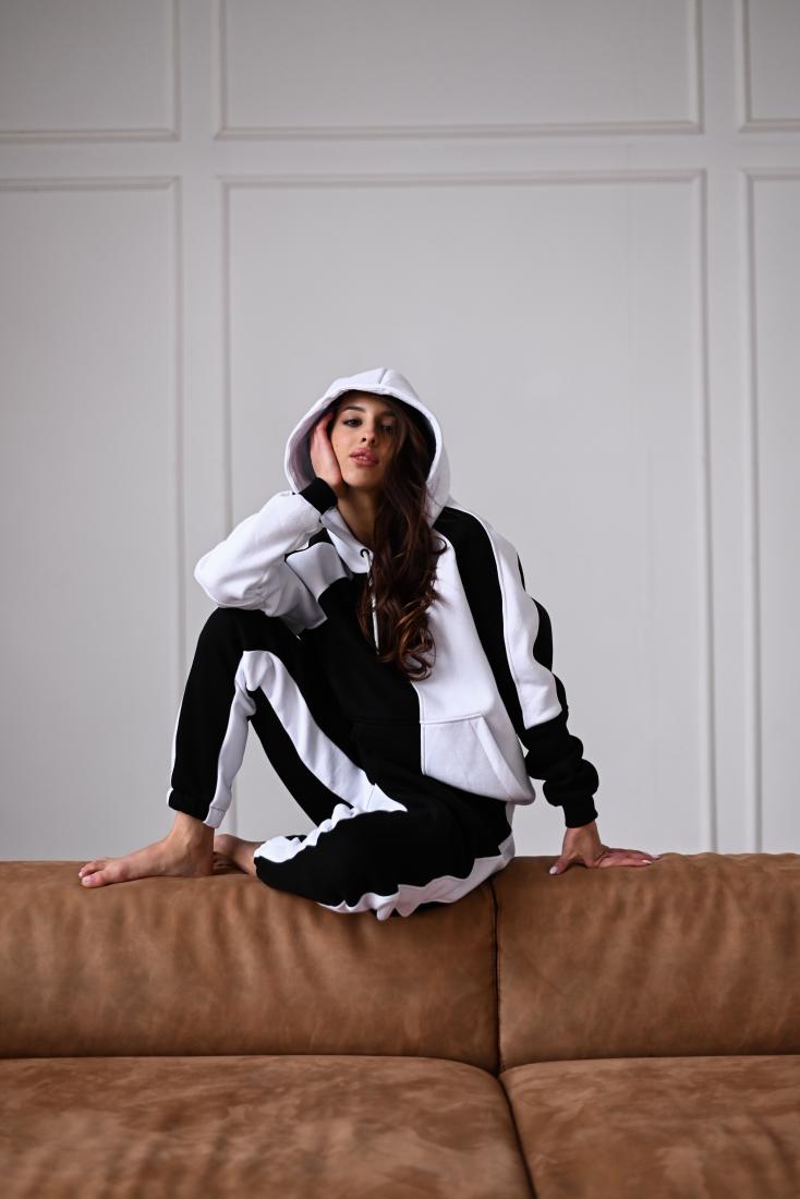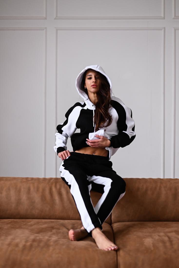 Женский Чорно-Белый Спортивный Костюм с Надписью на Спине – Утепленный на Флисе