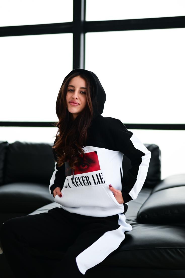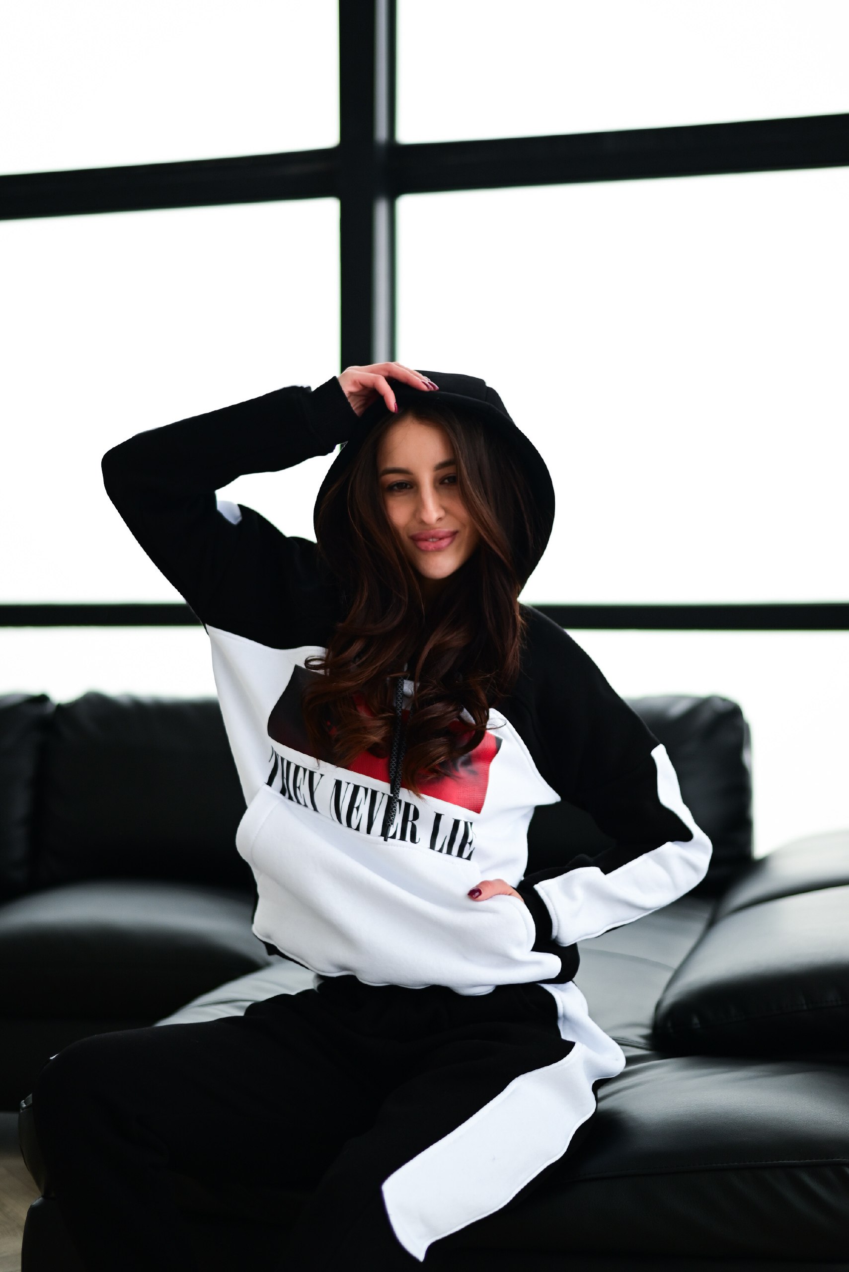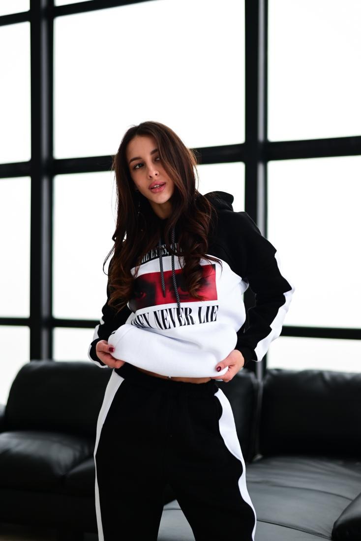 Женский Чорно-Белый Спортивный Костюм с Принтом Глаза – Утепленный на Флисе