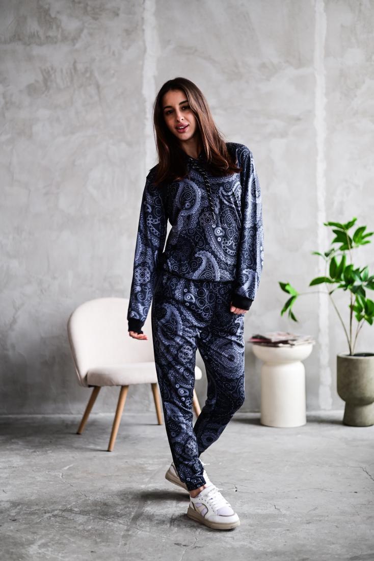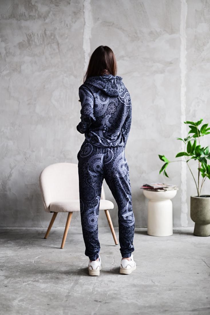 Женский Графитовый Спортивный Костюм Худи Джоггеры – Двунитка в Принт Узор