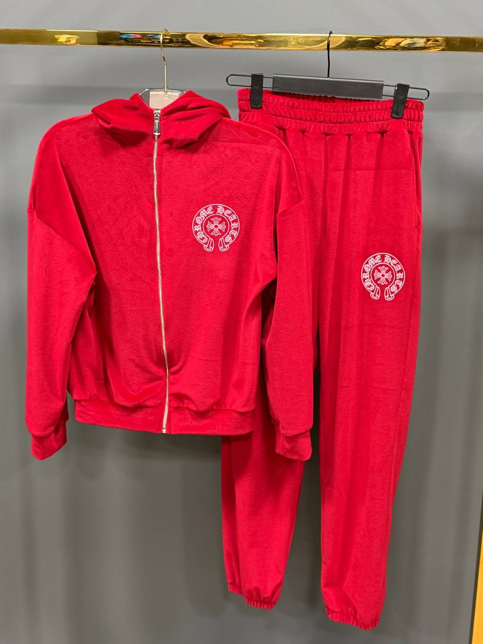 Женский Красный Велюровый Костюм – Кофта Зипка на Молнии + Штаны Джоггеры