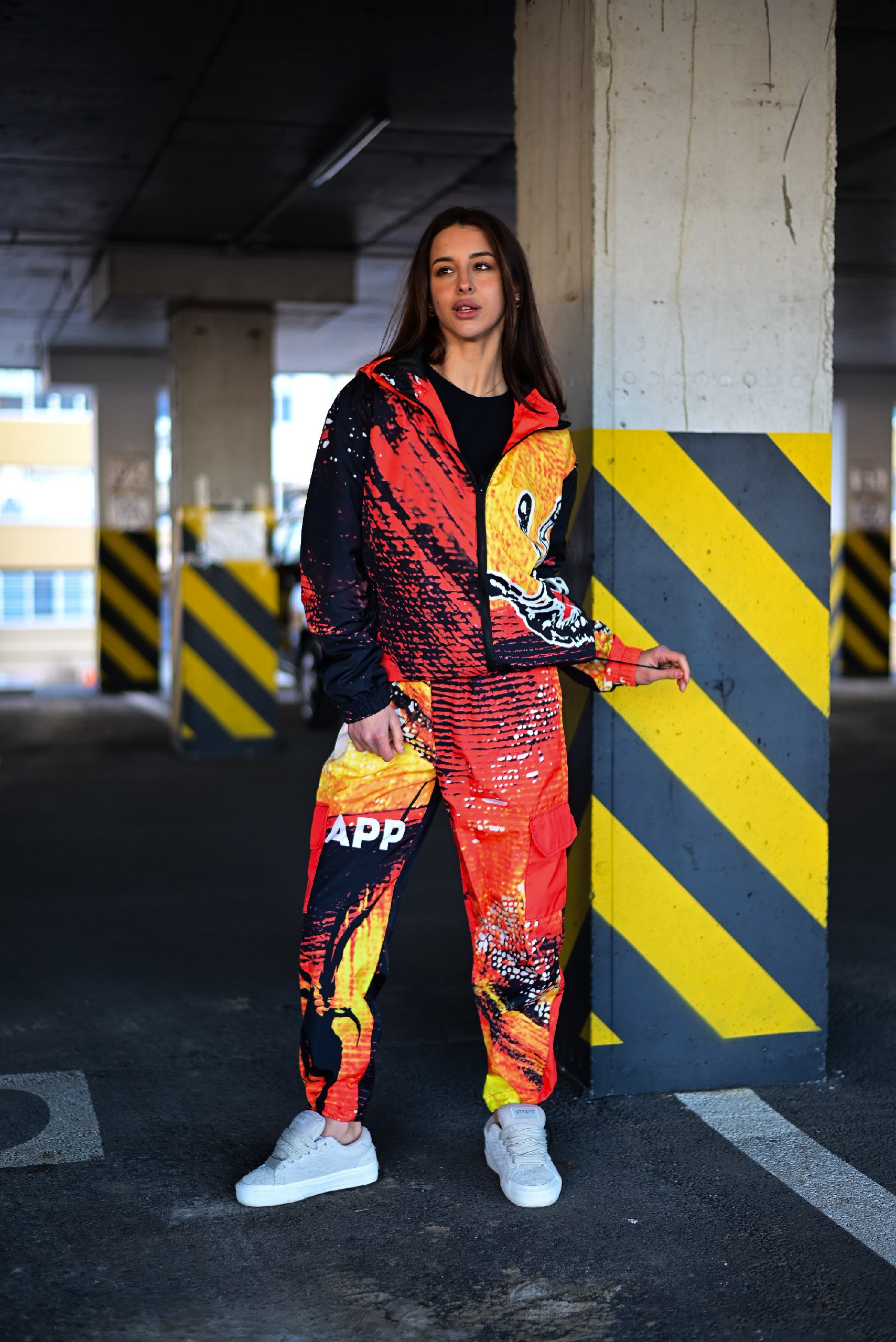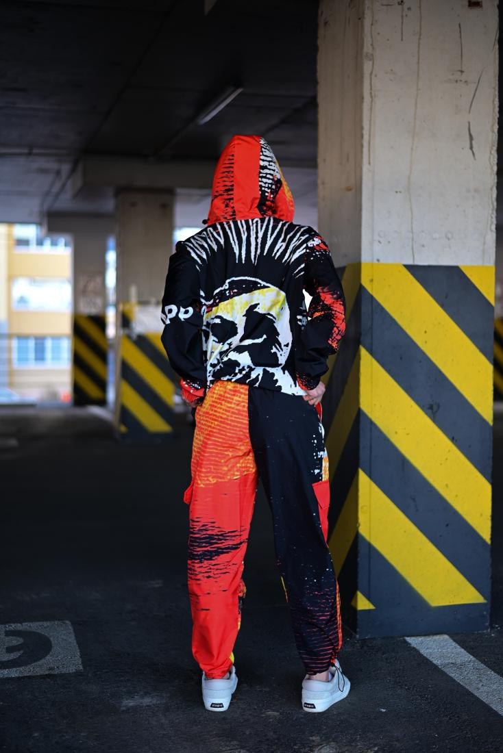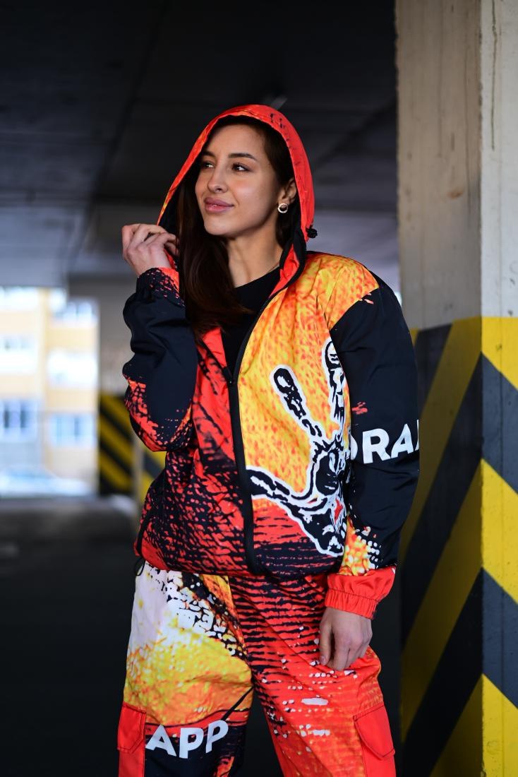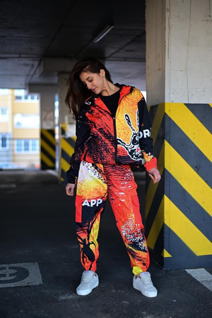 Женский Оранжевый Спортивный Костюм Плащевка в Принт (Олимпийка + Джоггеры)