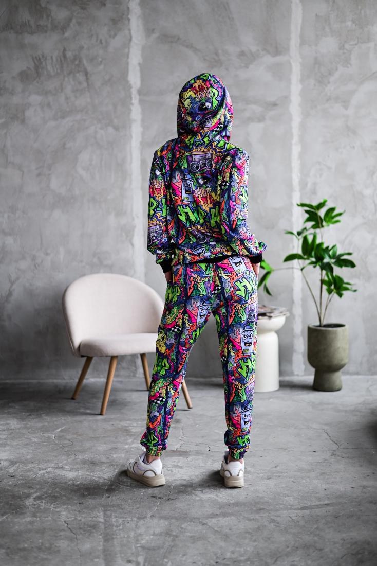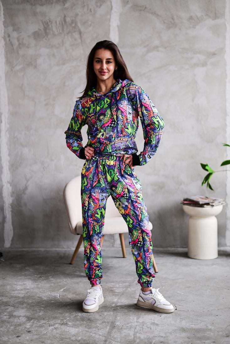 Женский Разноцветный Спортивный Костюм Худи Джоггеры – Двунитка в Принт