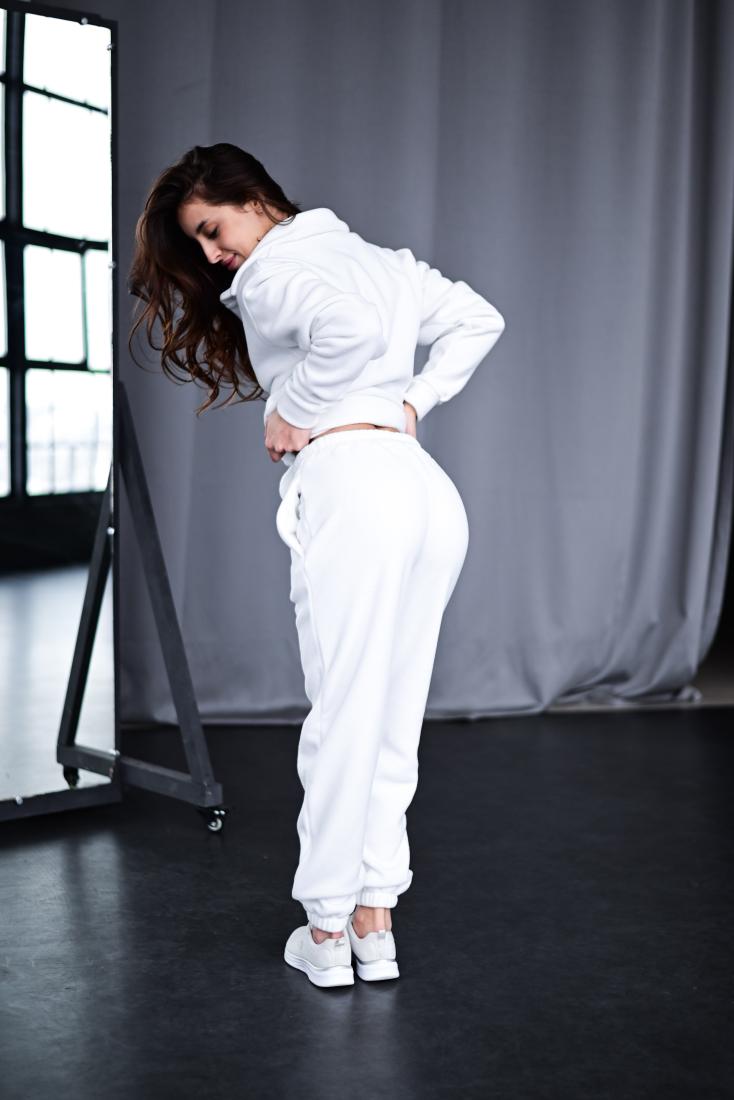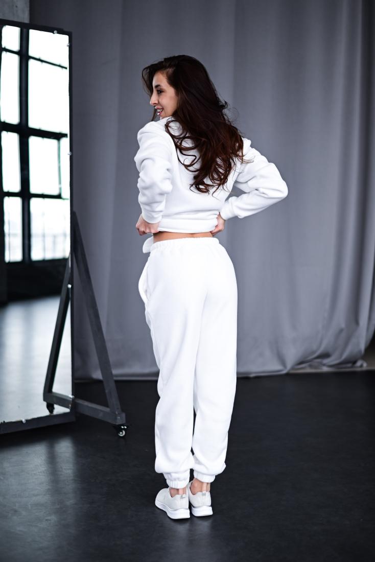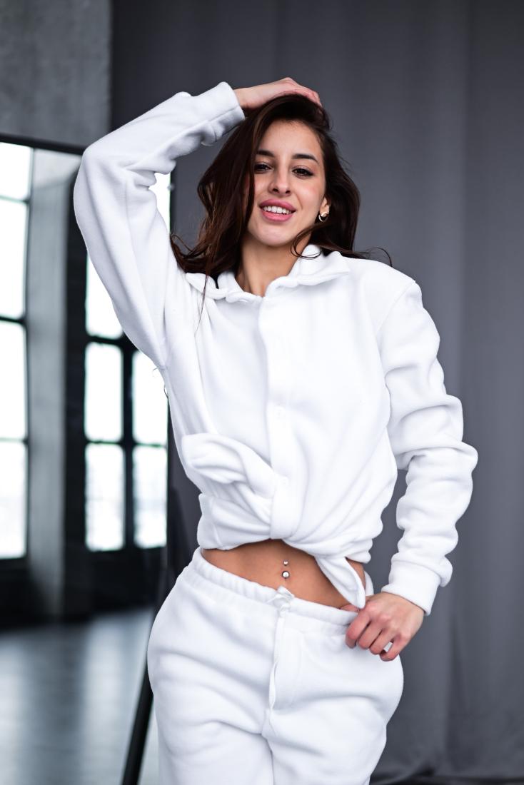 Женский Теплый Флисовый Белый Костюм – Рубашка + Штаны Джоггеры