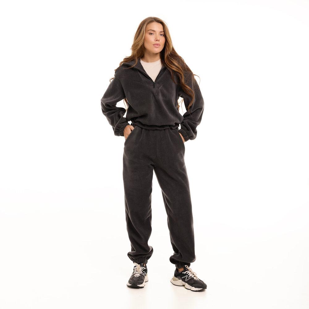 Женский Теплый Флисовый Графитовый Костюм – Кофта под Горло с Коротким Замком + Штаны Джоггеры
