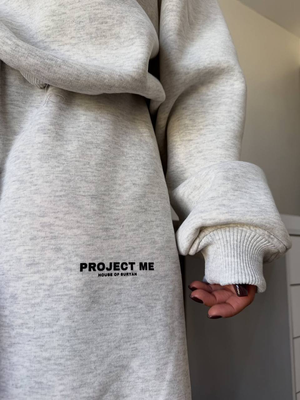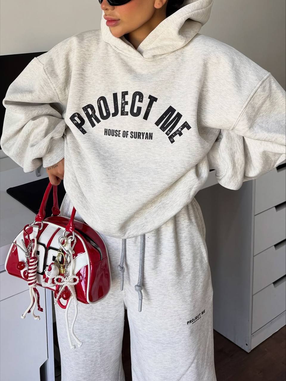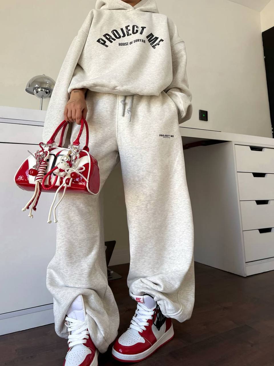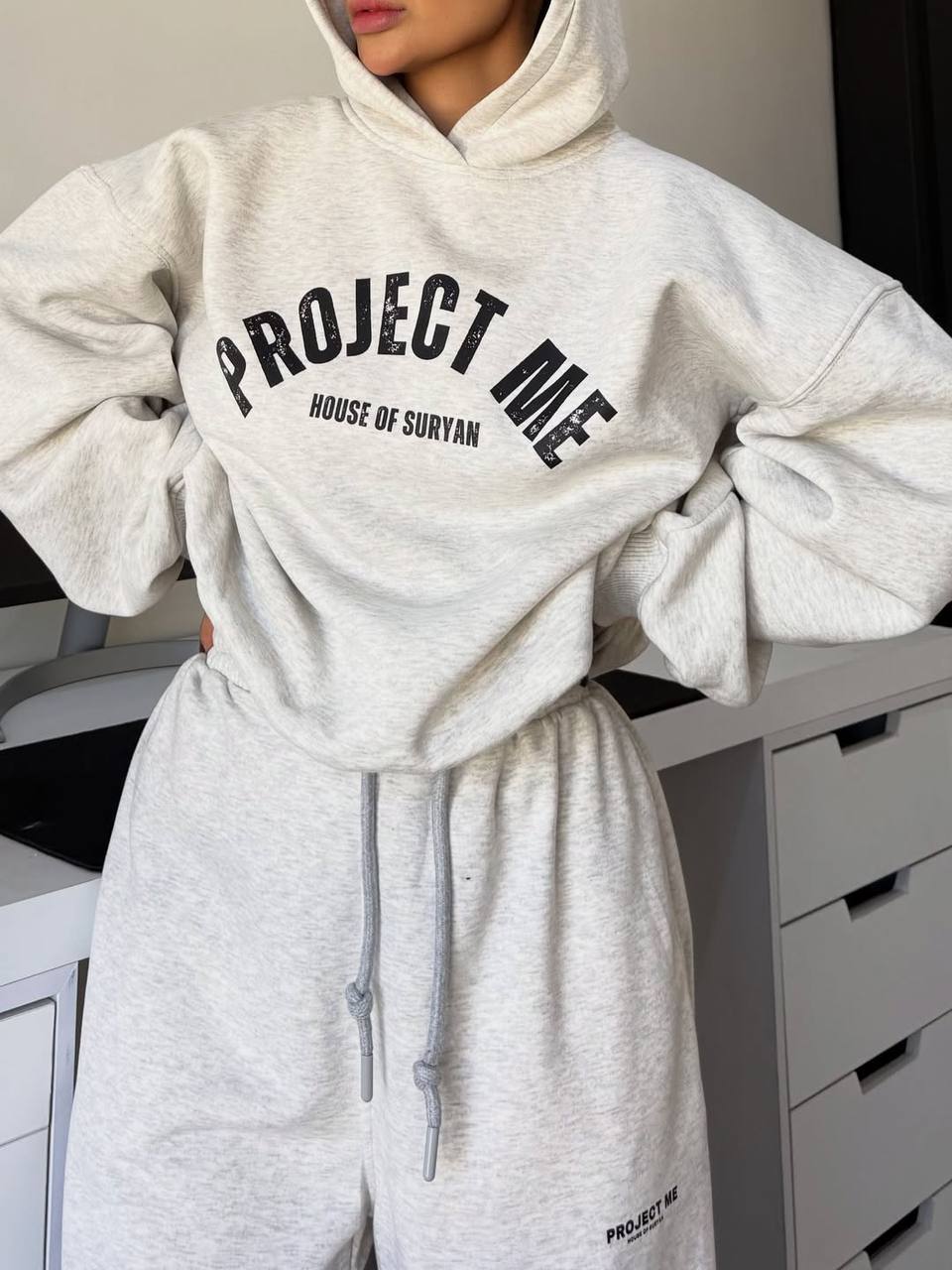 Женский Теплый Серый Спортивный Костюм Оверсайз с Начесом – Объемное Худи + Широкие Штаны с Кулисками