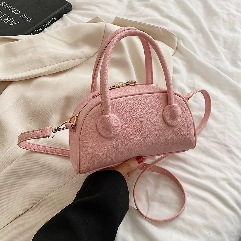 Женская Маленькая Кожаная Розовая Сумка с Короткой Ручкой и Длинным Ремешком