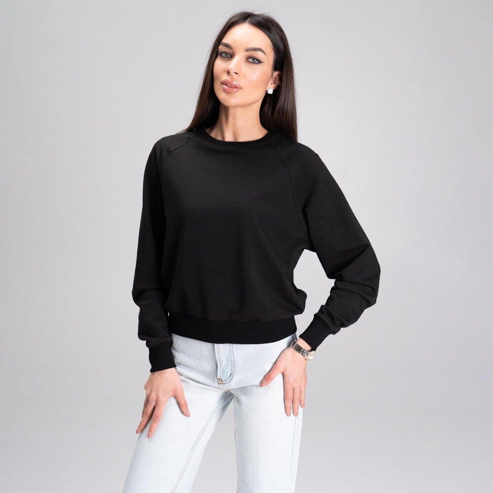 Женский Базовый Свободный Черный Свитшот Реглан