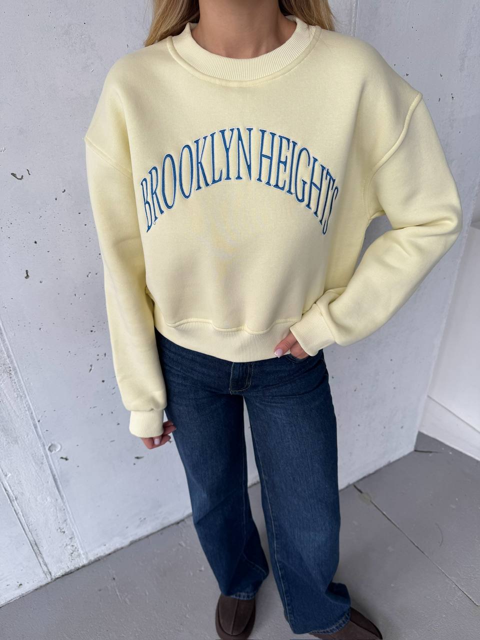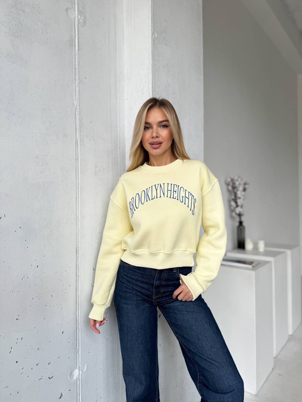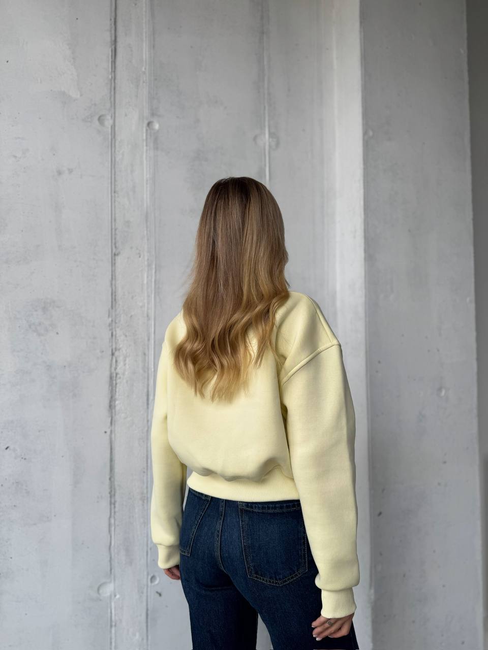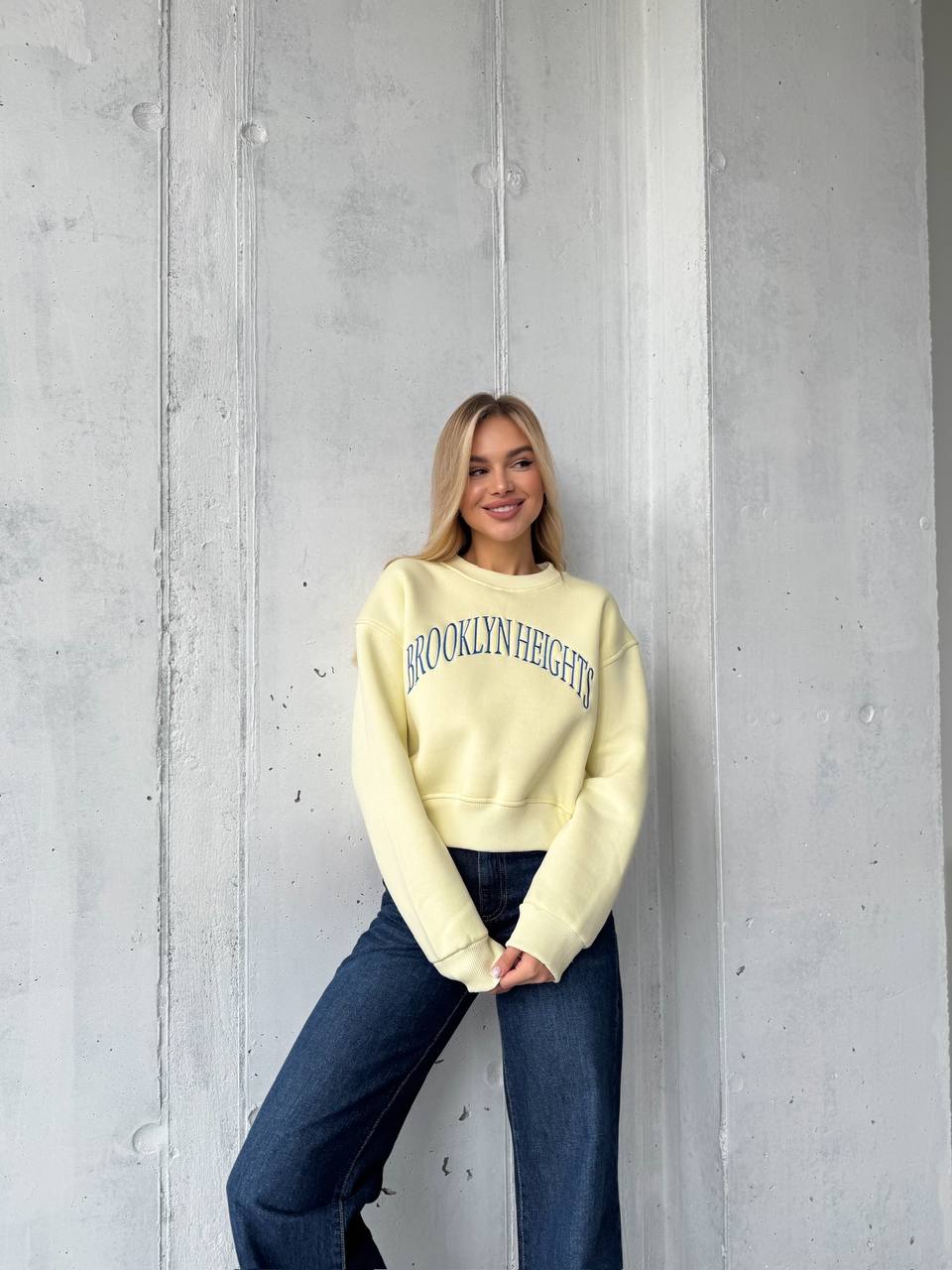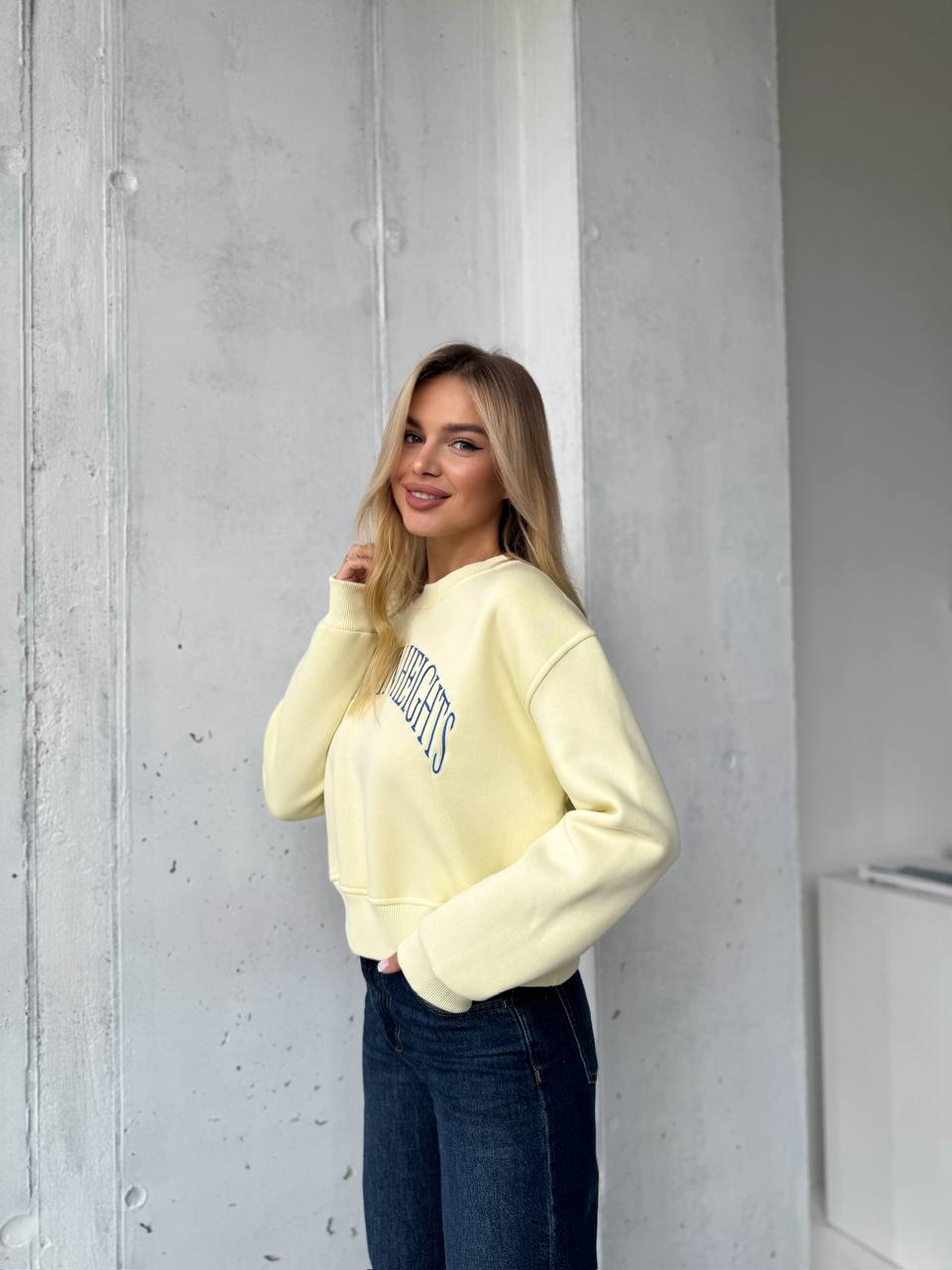 Женский Укороченный Желтый Свитшот Оверсайз с Вышивкой