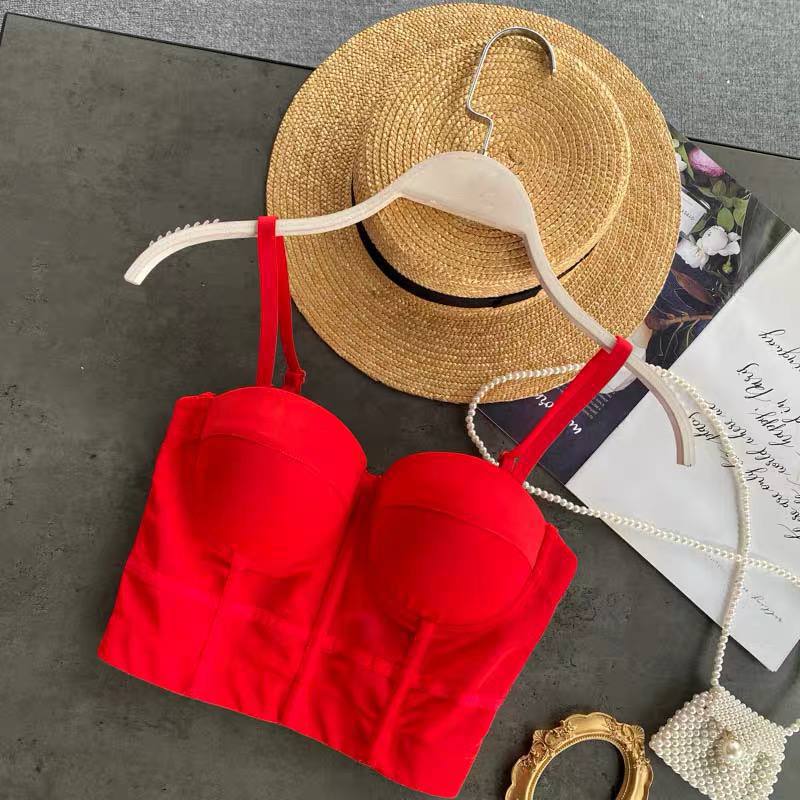 Женский Базовый Красный Топ на Бретелях с Чашечками и Сеткой