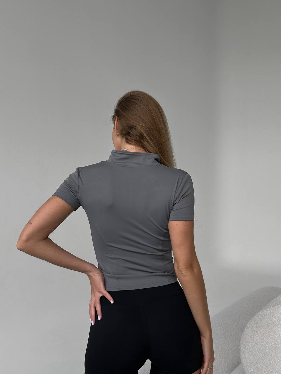 Женский Спортивный Графитовый Кроп Топ на Молнии с Короткими Рукавами