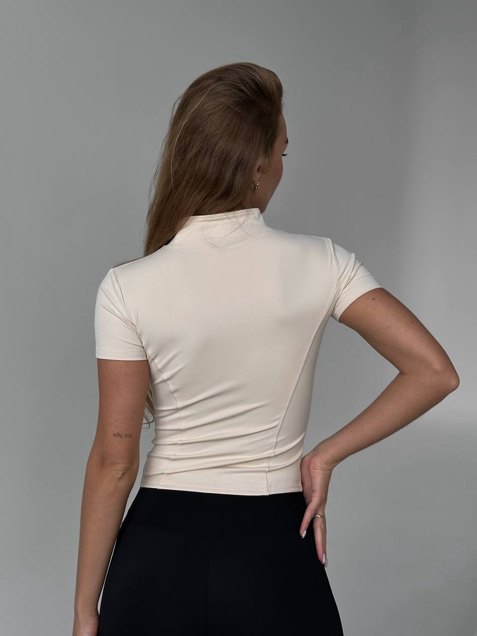Женский Спортивный Молочный Кроп Топ на Молнии с Короткими Рукавами