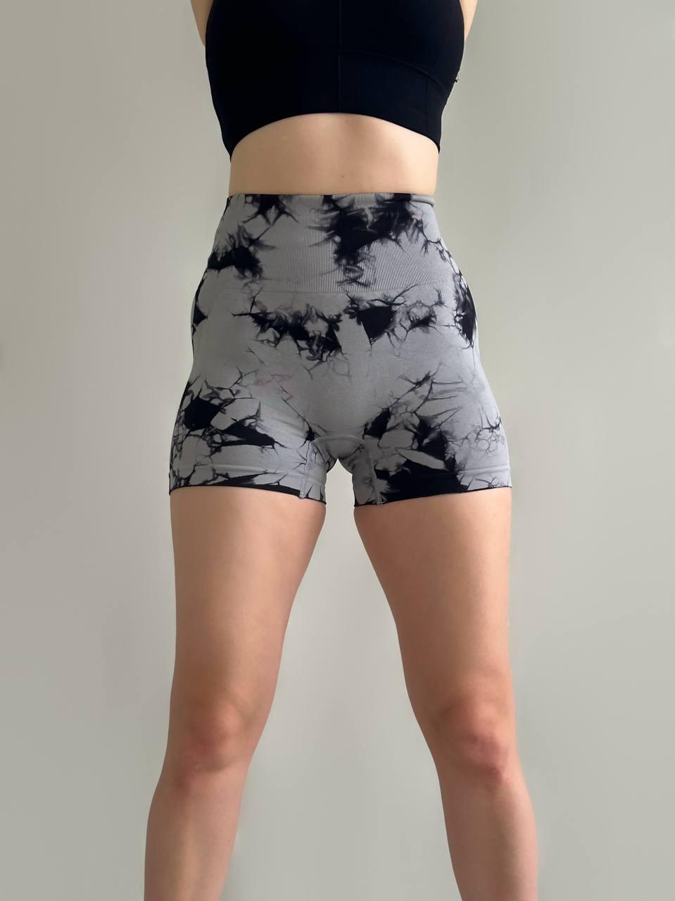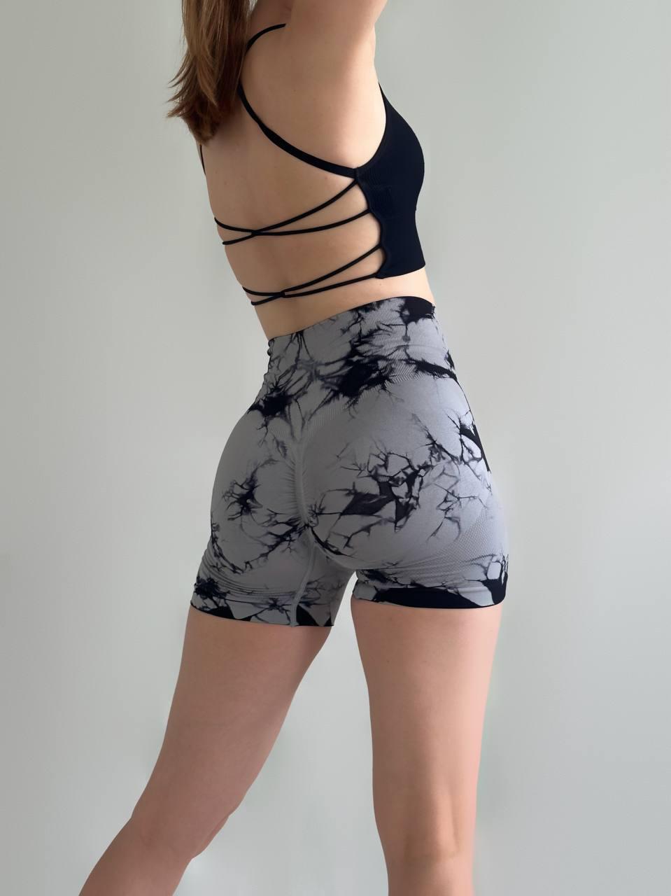 Женские Короткие Серые Спортивные Шорты Велосипедки Push Up в Мраморный Принт