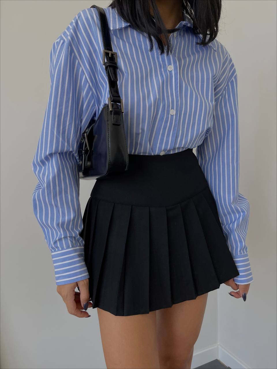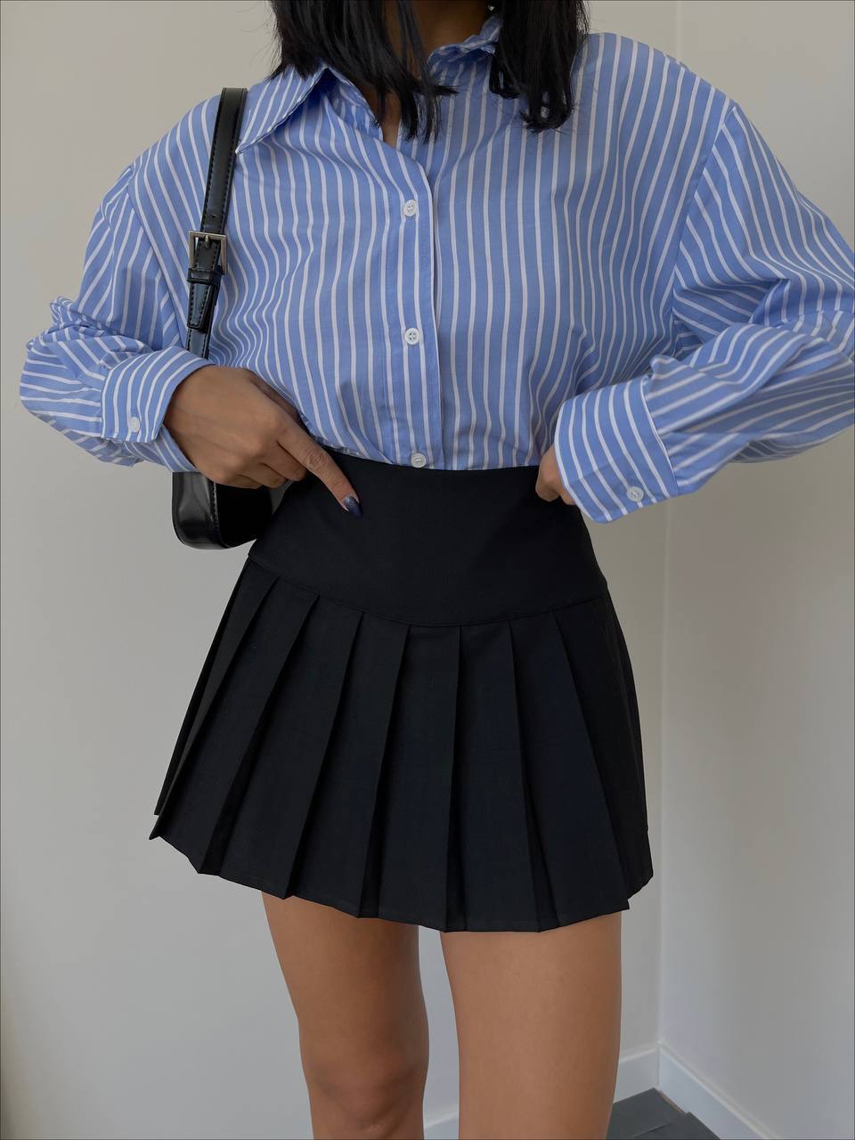 Женская Черная Юбка Плиссе Мини с Подкладкой Шортиками