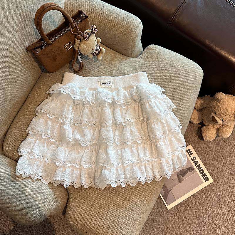 Женская Кружевная Белая Юбка Мини с Рюшами + Подкладка Шортиками