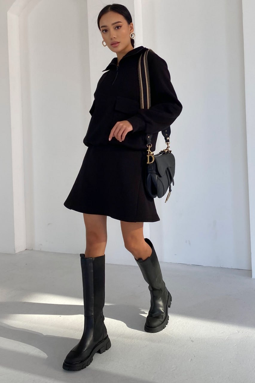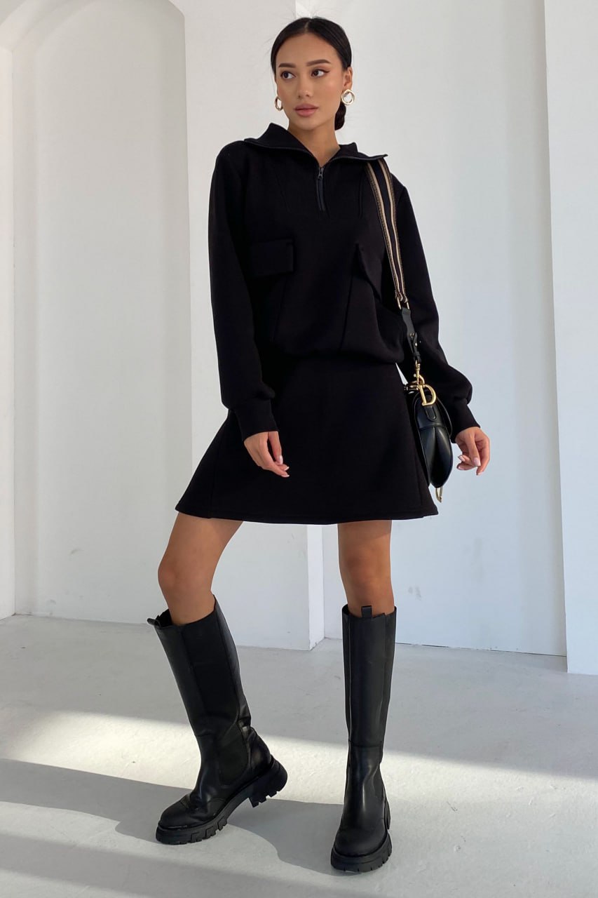 Женская Утепленная Черная Юбка Трапеция Альба не Флисе
