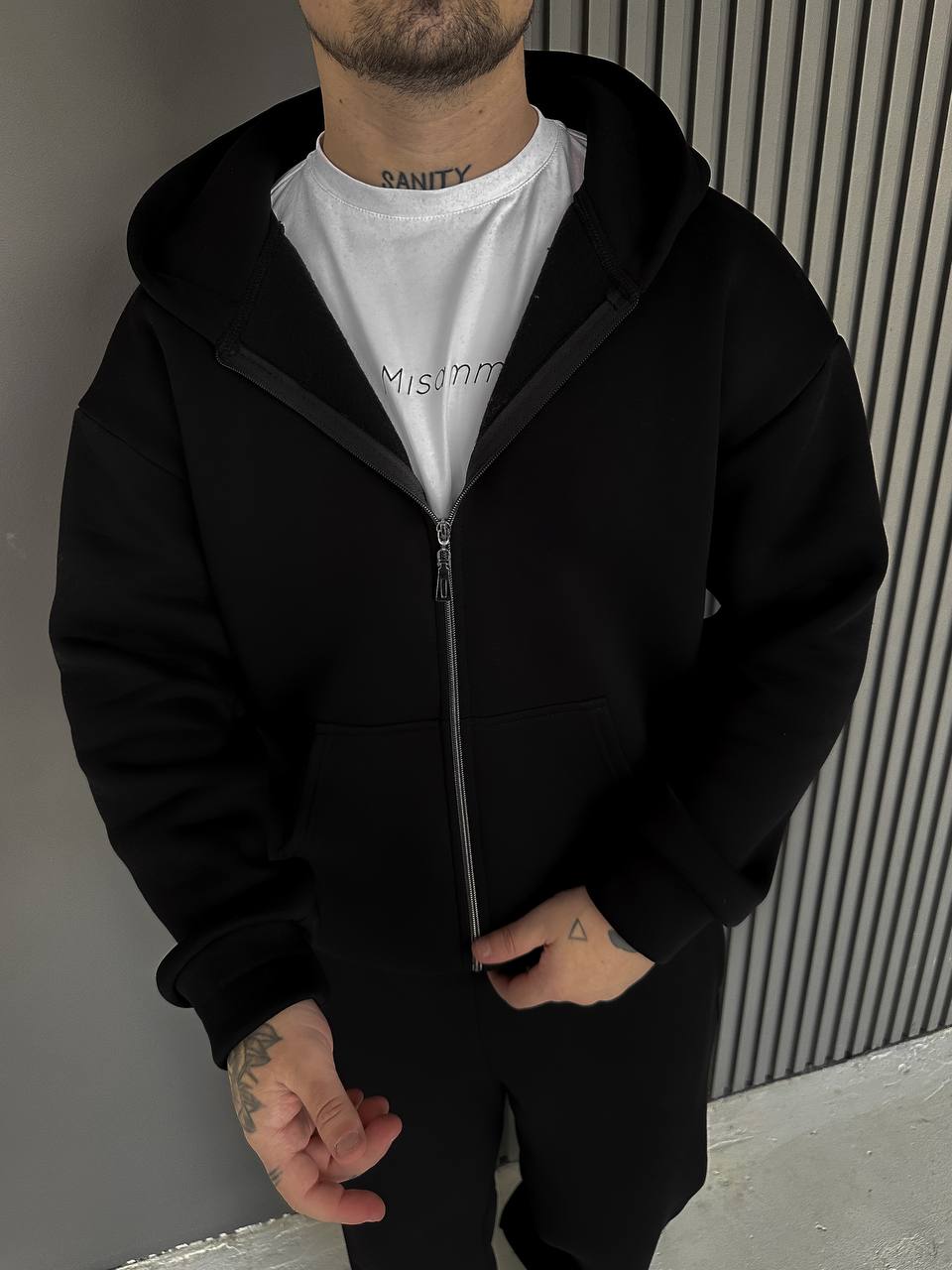 Мужское Теплое Черное Зип Худи с Начесом – Кофта Зипка на Молнии с Капюшоном