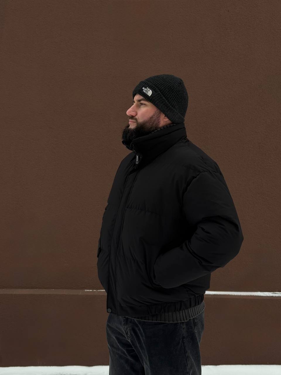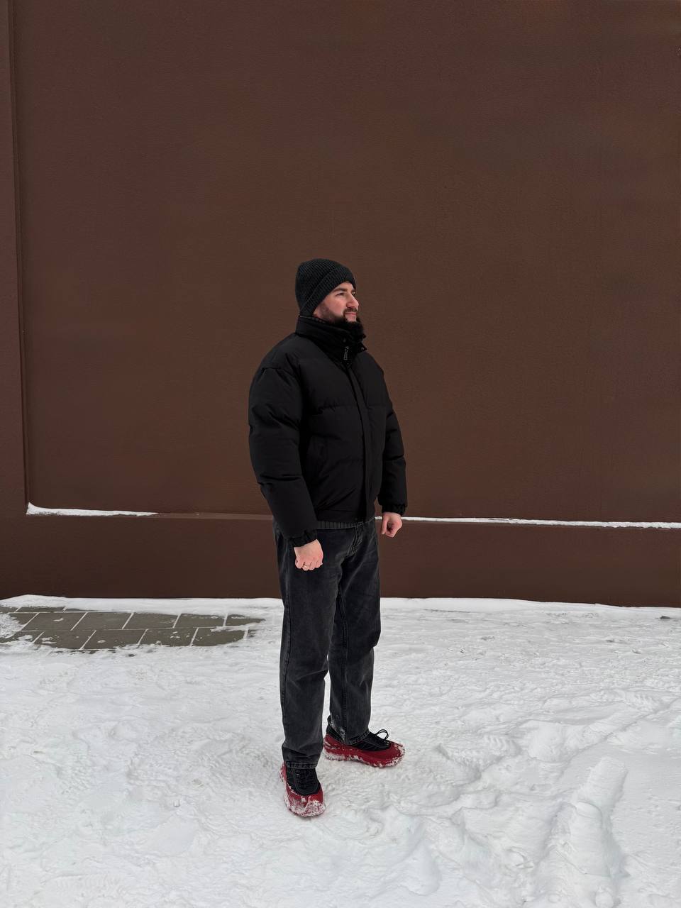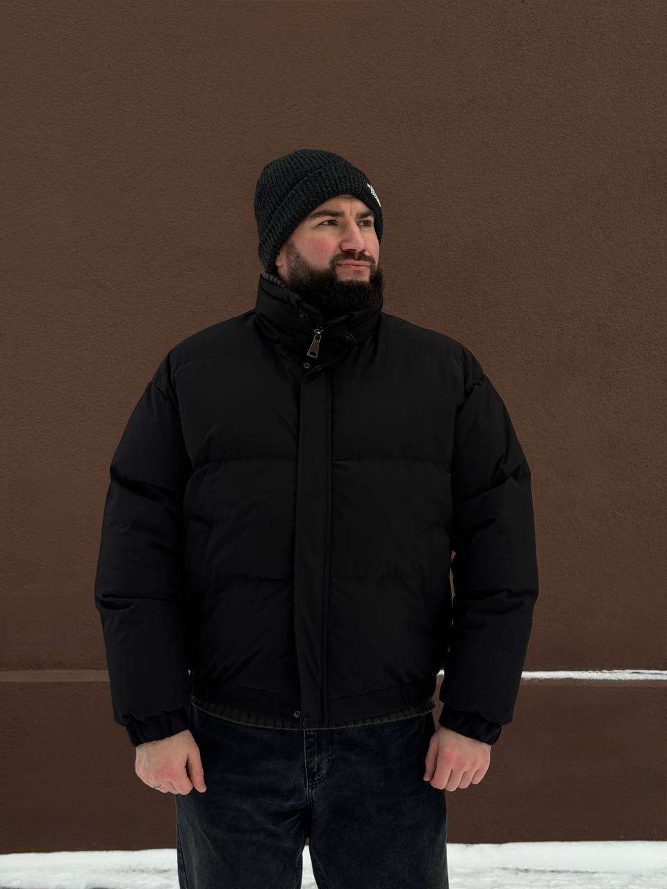 Мужская Черная Дутая Куртка на Зиму – Теплая с Высокой Горловиной