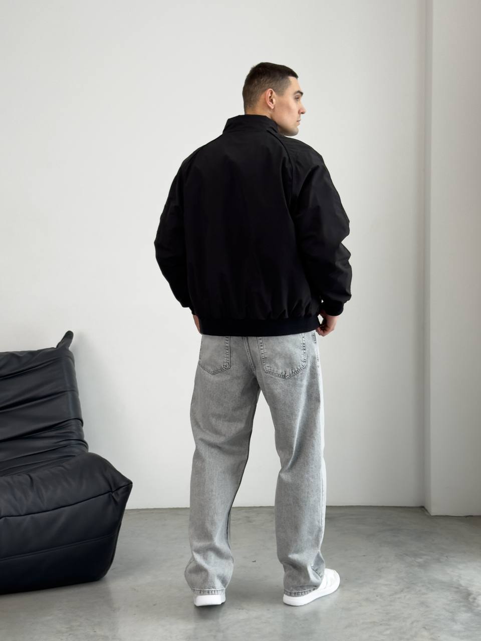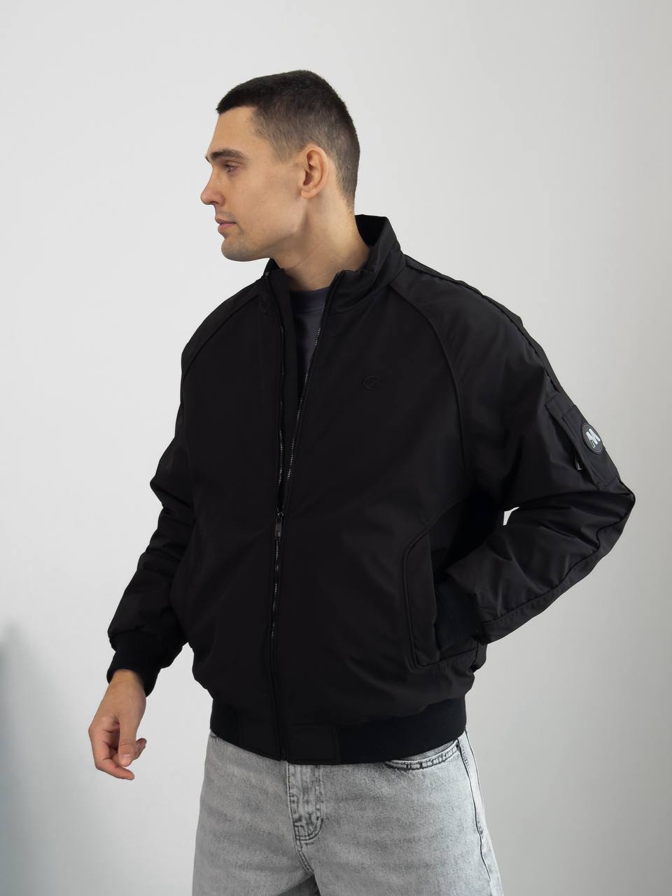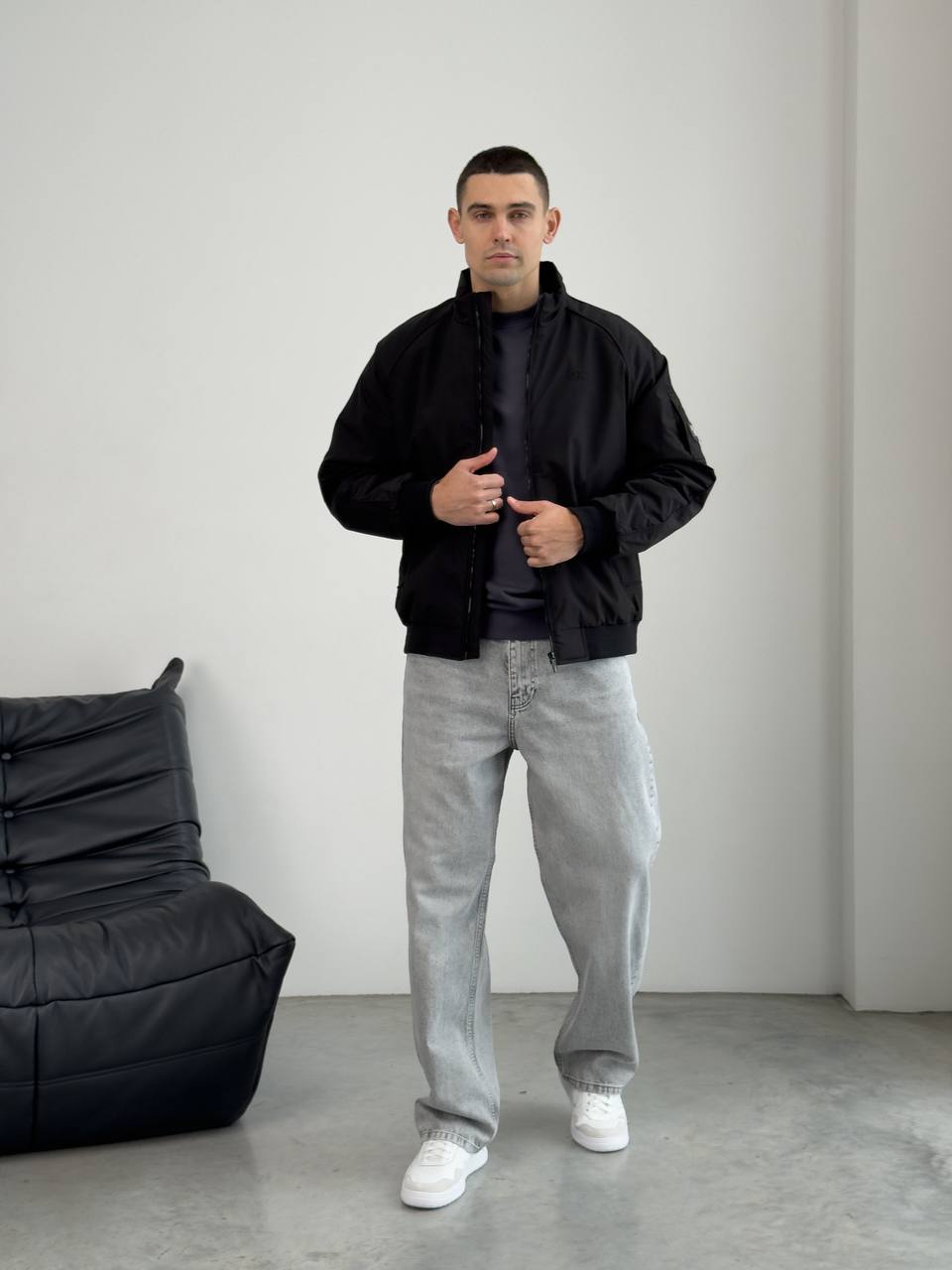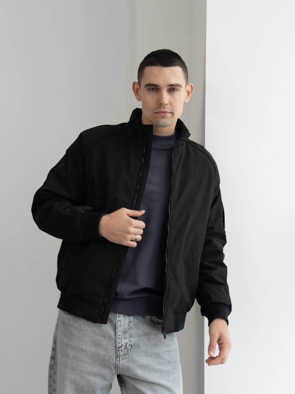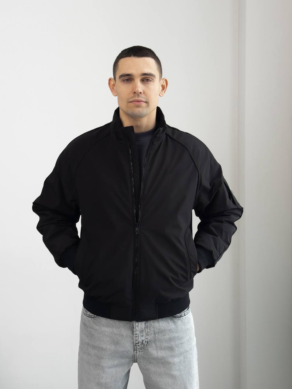 Мужская Демисезонная Черная Куртка Бомбер Свободного Кроя с Высокой Горловиной