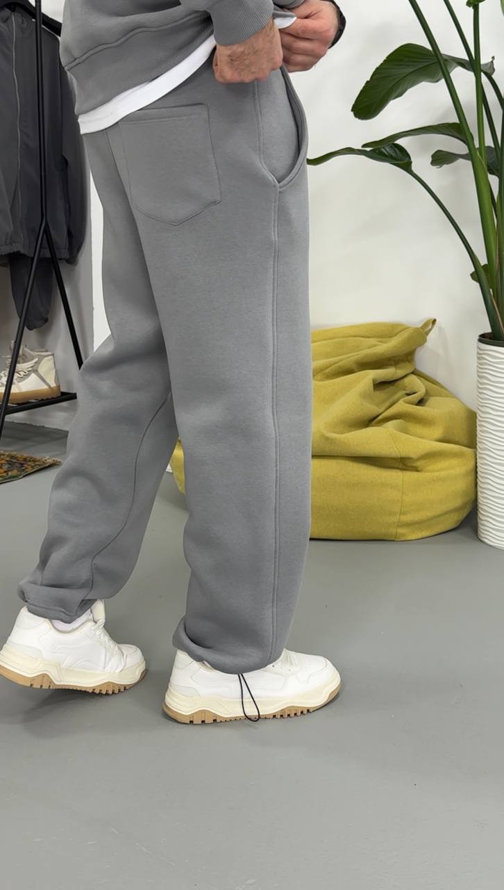 Мужские Базовые Серые Спортивные Штаны – Свободные с Утеплением на Флисе