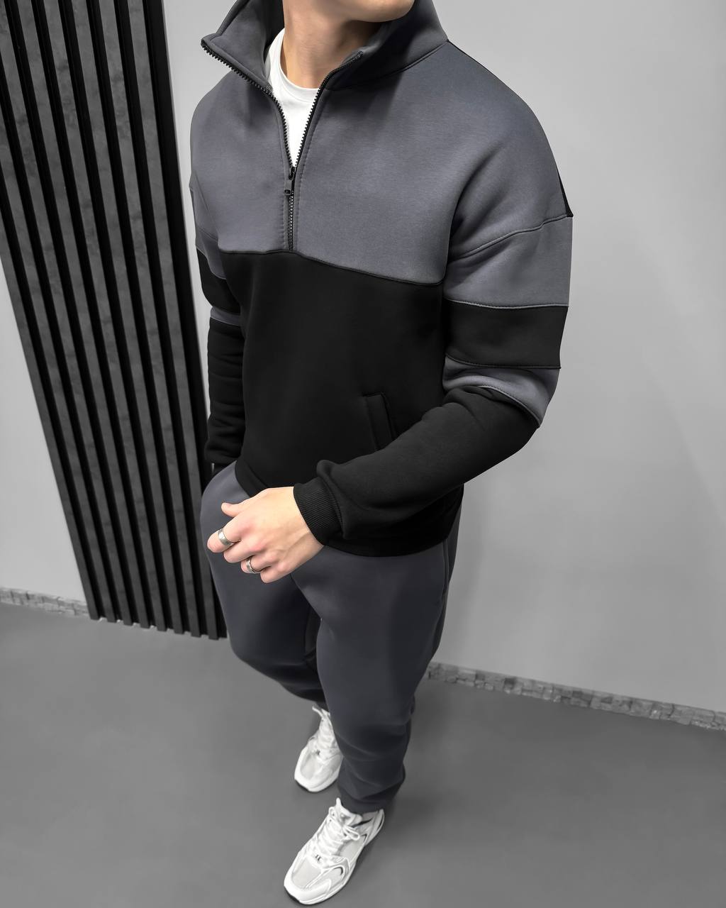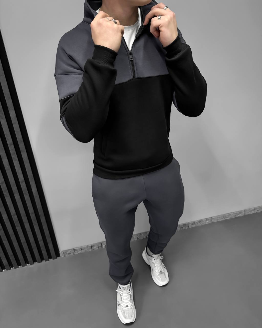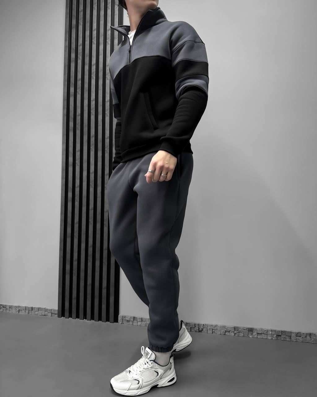Мужской Графитовый Костюм с Черными Вставками – Утепленный на Флисе