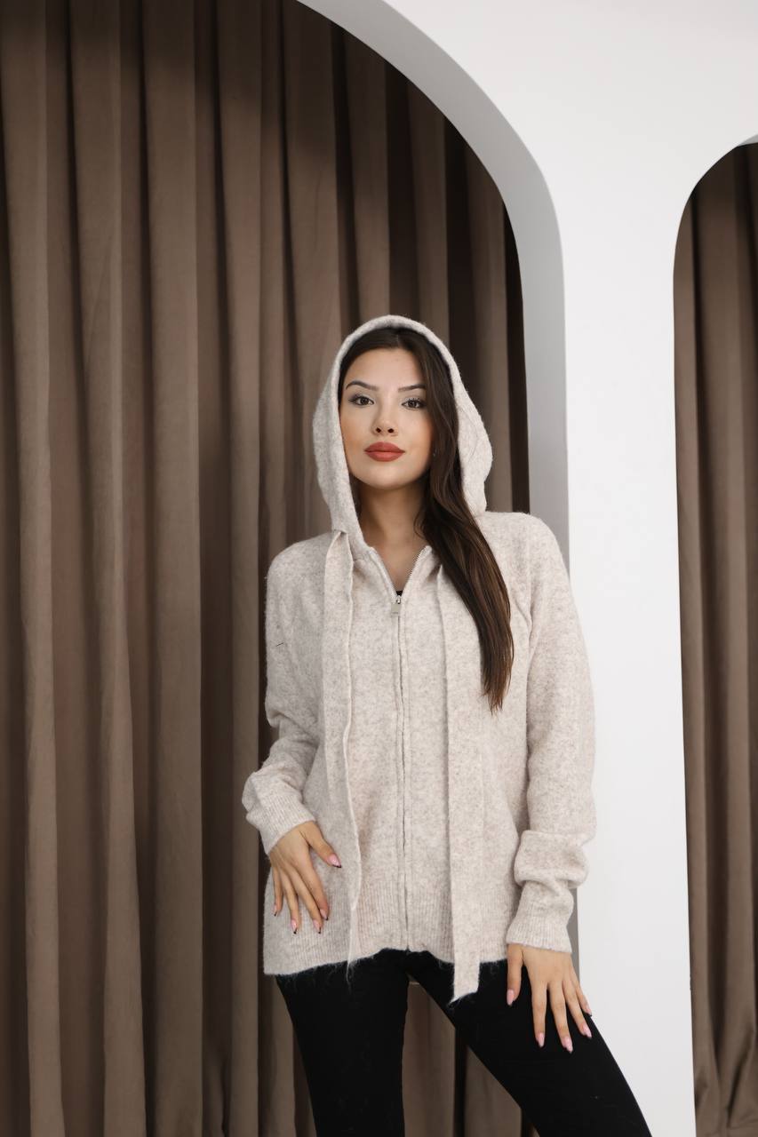 Главная Магазин Каталог Женское Обувь Босоножки Женская Теплая Бежевая Кофта Свобоного Кроя на Молнии с Капюшоном на Завязке