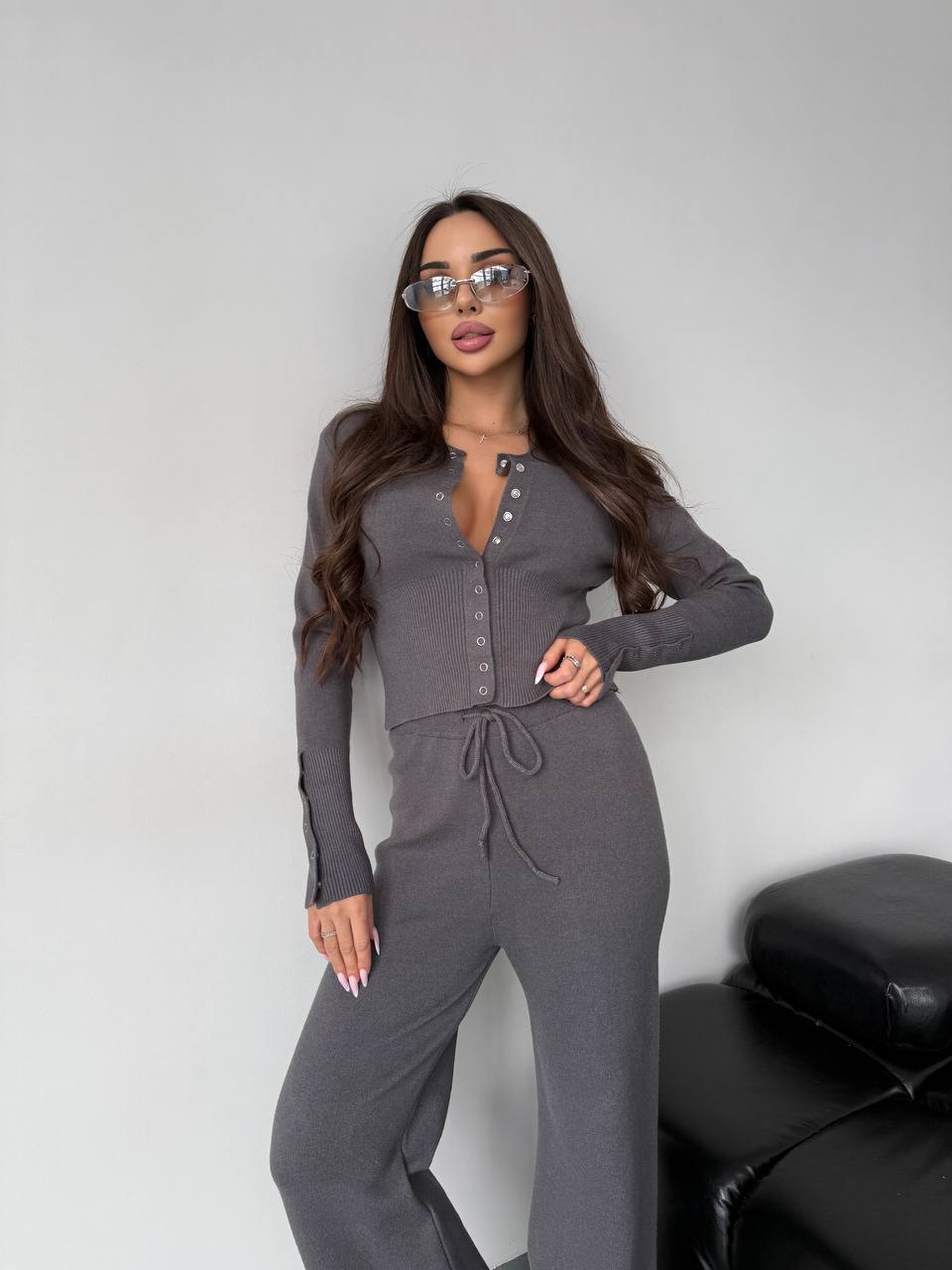 Женский Базовый Серый Костюм Двойка – Приталенная Кофта на Кнопках + Свободные Штаны